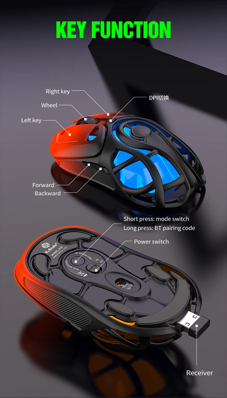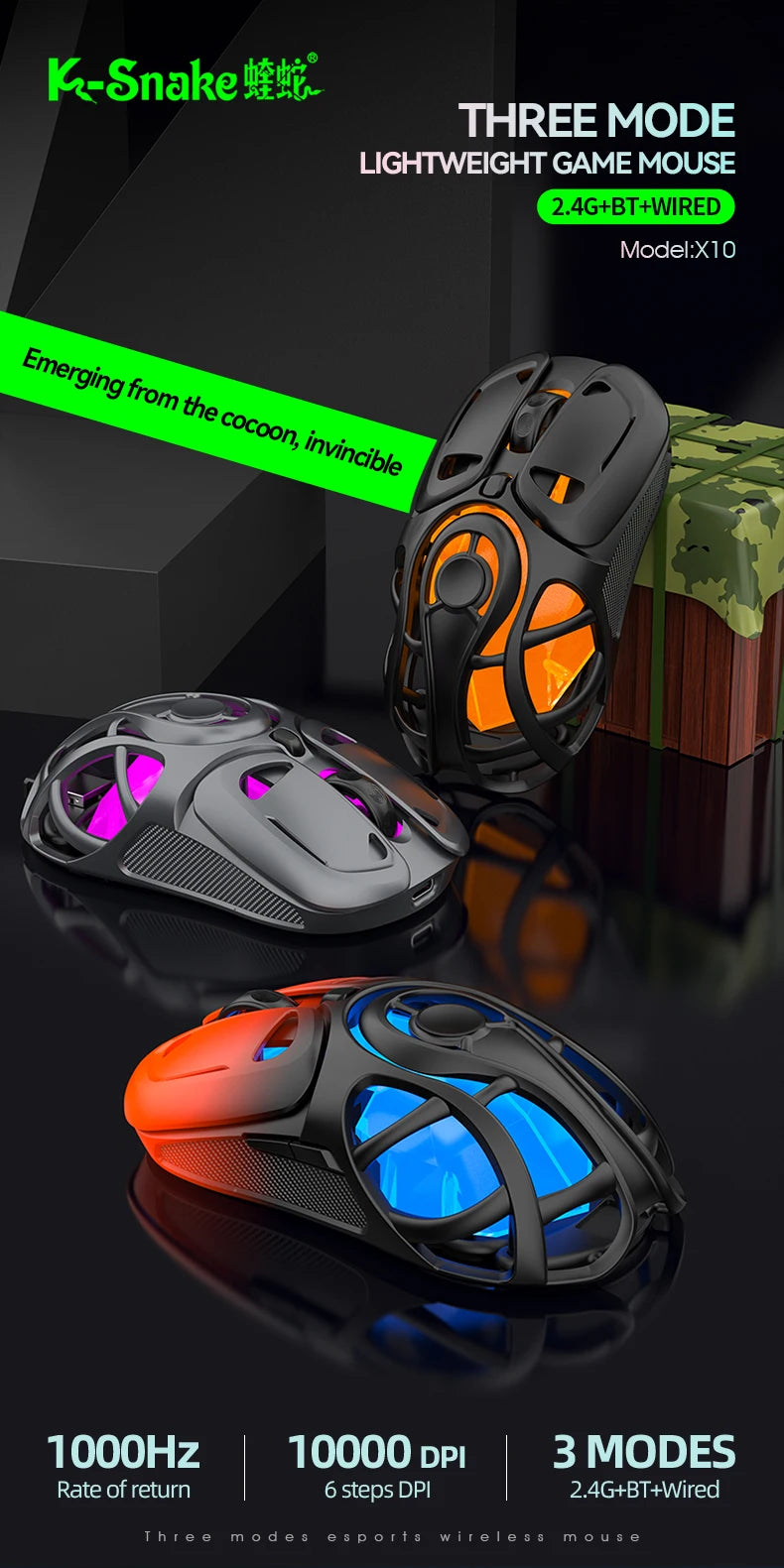 Беспроводная мышь Bluetooth K-snake X10 для киберспортивных игр, с зарядкой, легкая, полая, для ноутбука,...
