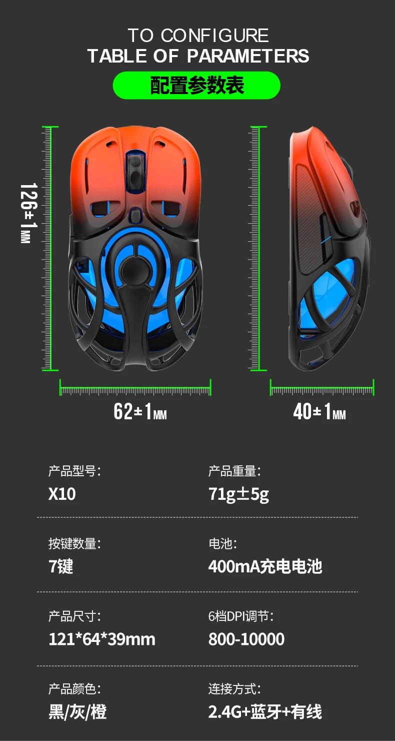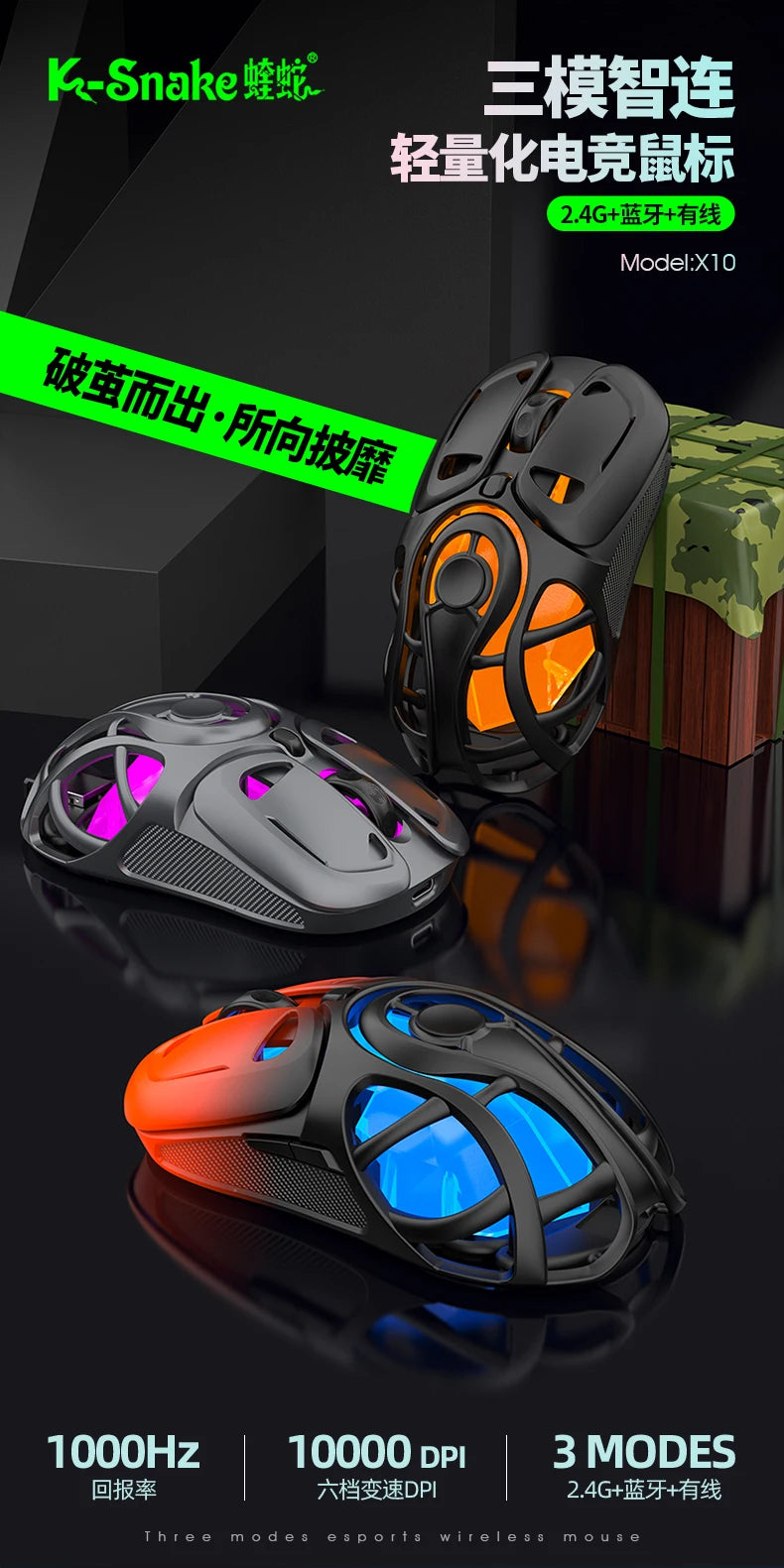 Беспроводная мышь K-snake X10 Bluetooth, третья модель для проверки, для киберспорта, ноутбука, 1000 Гц, ...