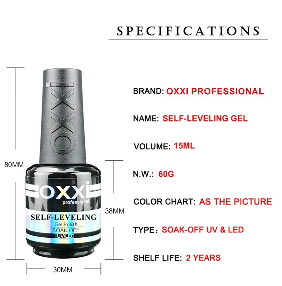 OXXI PROFESSIONAL Самовыравнивающийся гель-лак 15 мл Полуперманентный укрепляющий гель-лак для ногтей Сто...