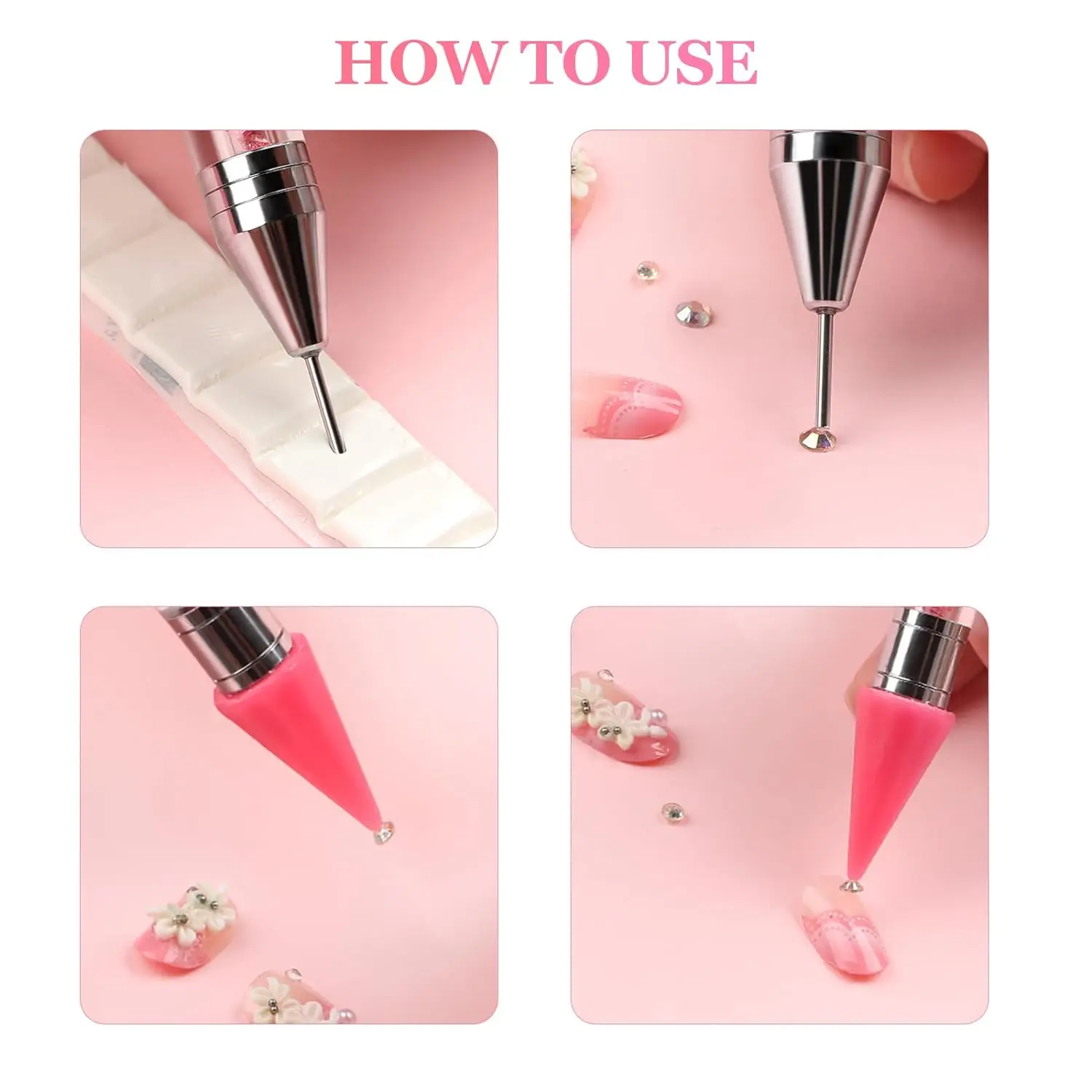 Ручка-карандаш для нанесения страз, двухсторонняя ручка для нанесения страз, драгоценных камней, кристаллов, гвоздиков, восковой карандаш, маникюрный инструмент для дизайна ногтей своими руками