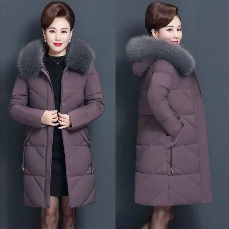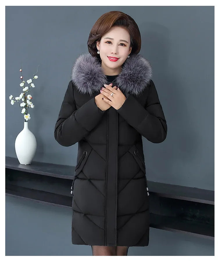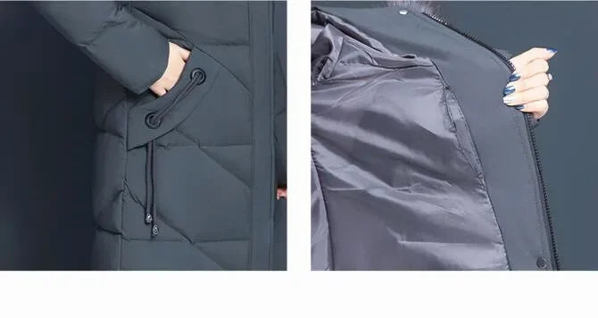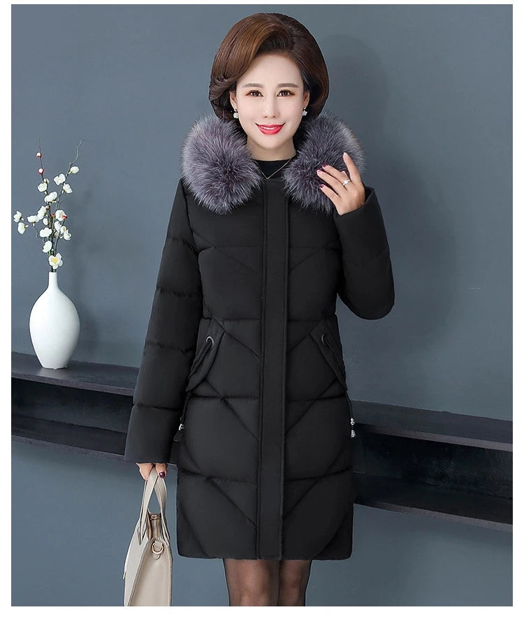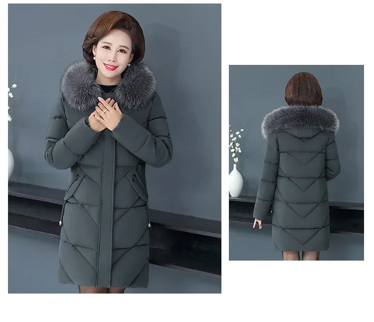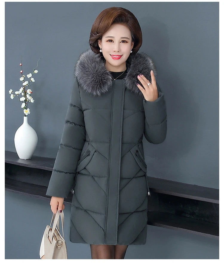 2025 НОВАЯ однотонная зимняя куртка с большим меховым воротником, женская, с капюшоном, утолщенное хлопко...
