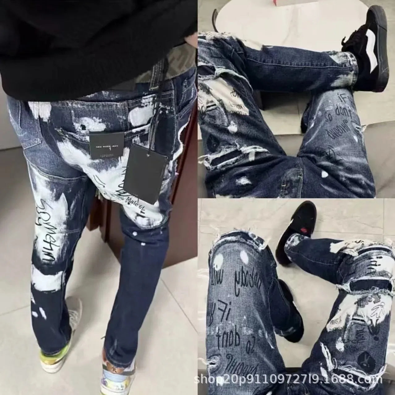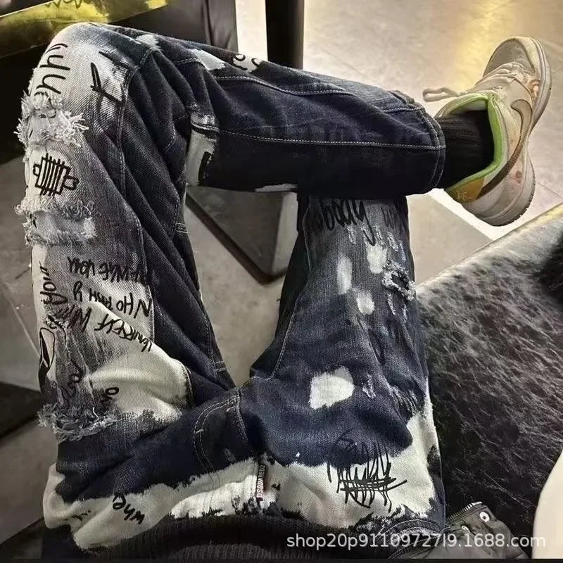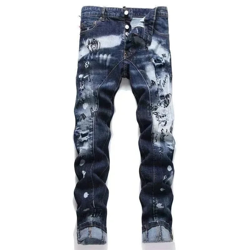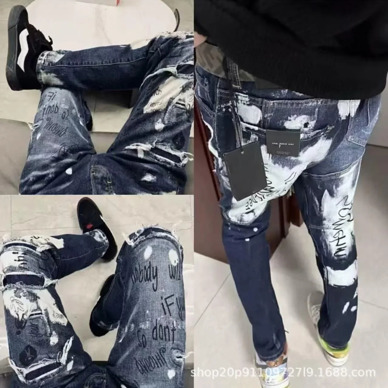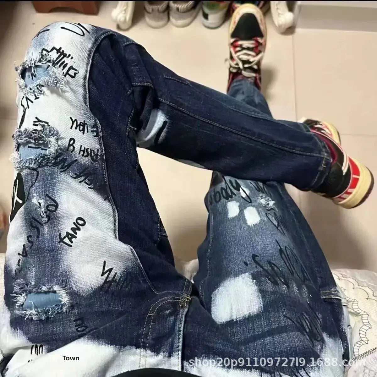 Мужские свободные джинсы свободного кроя в стиле хай-стрит, с чернильными бры...
