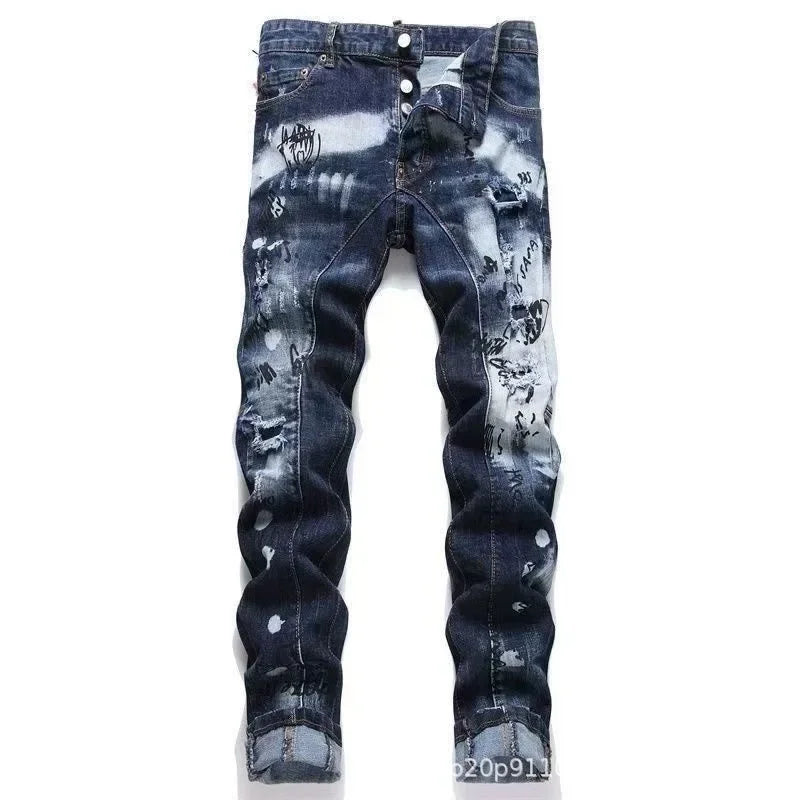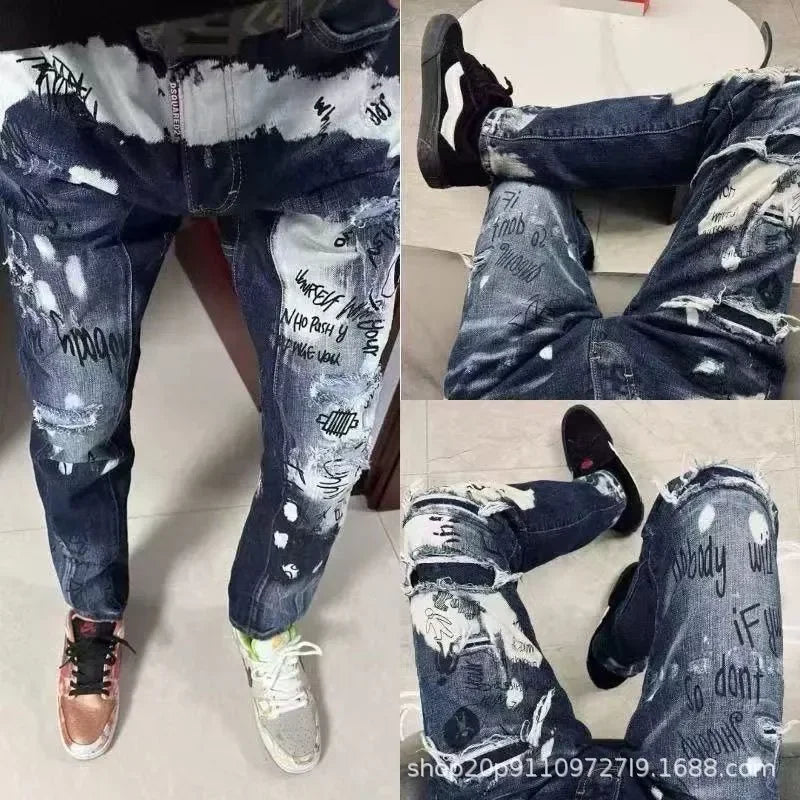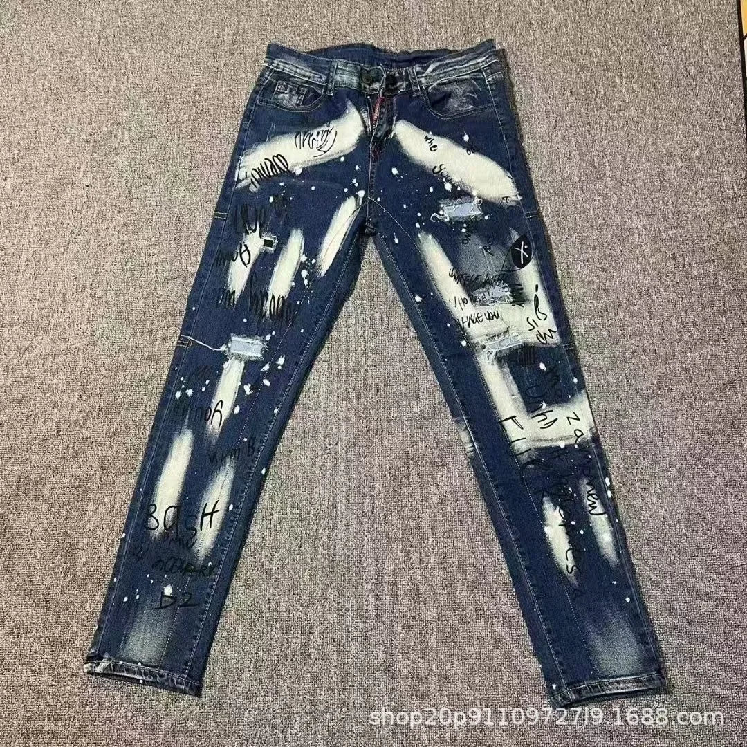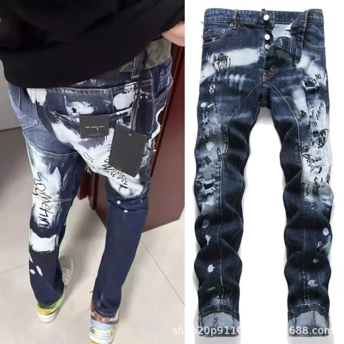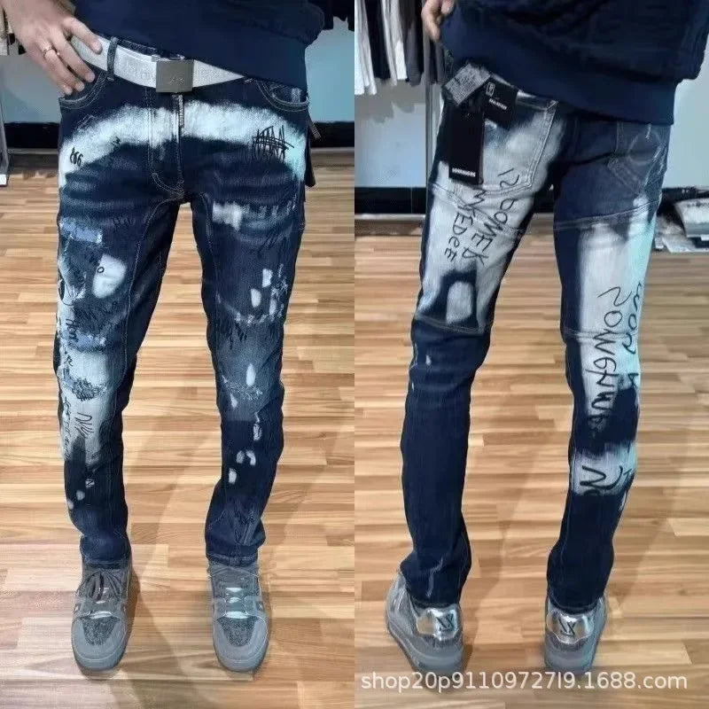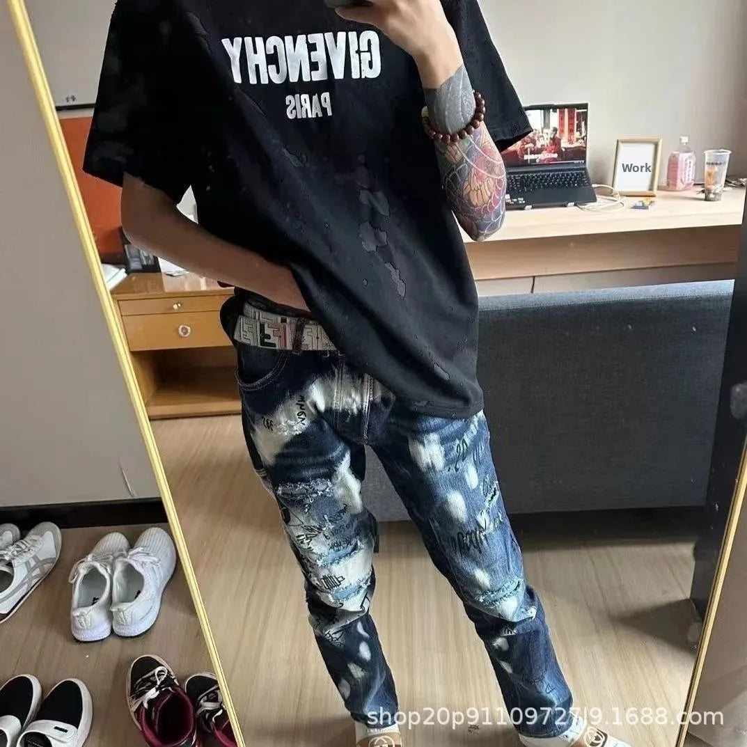 Мужские свободные джинсы свободного кроя в стиле хай-стрит, с чернильными бры...