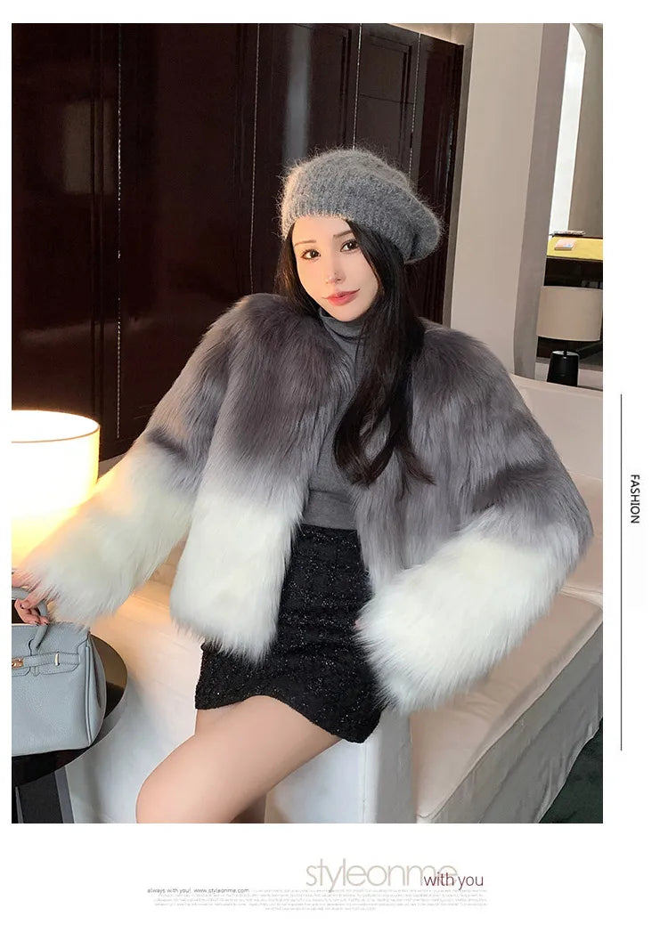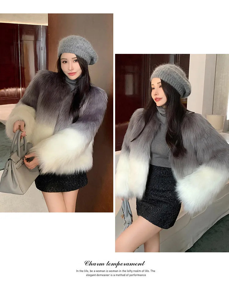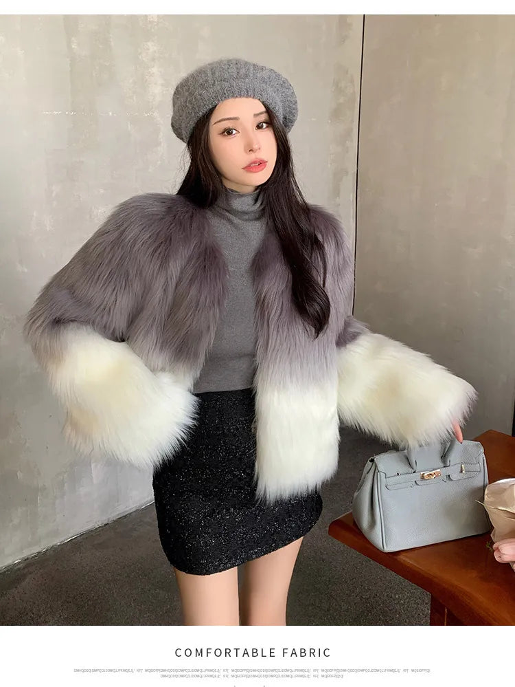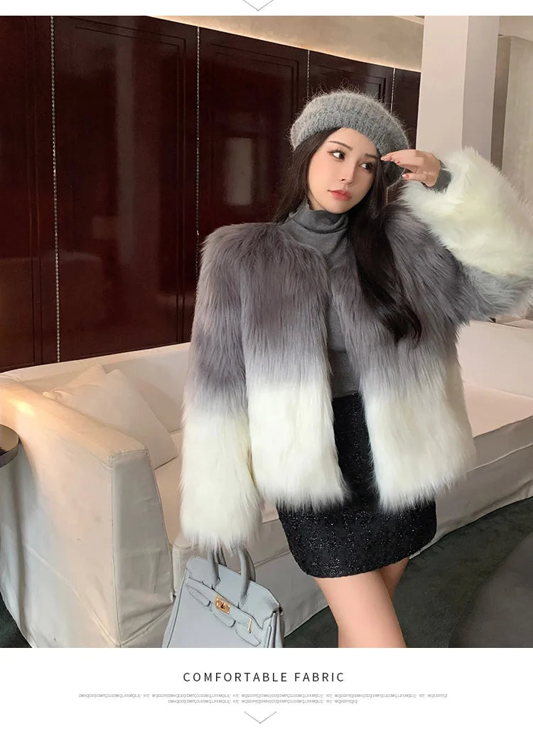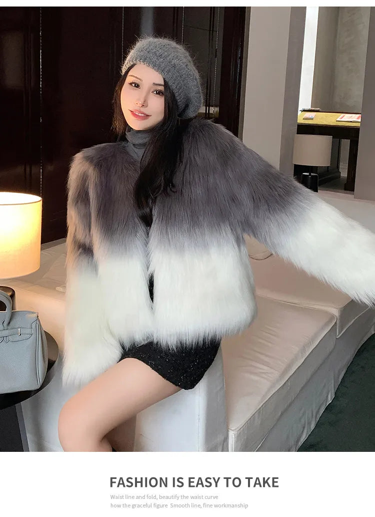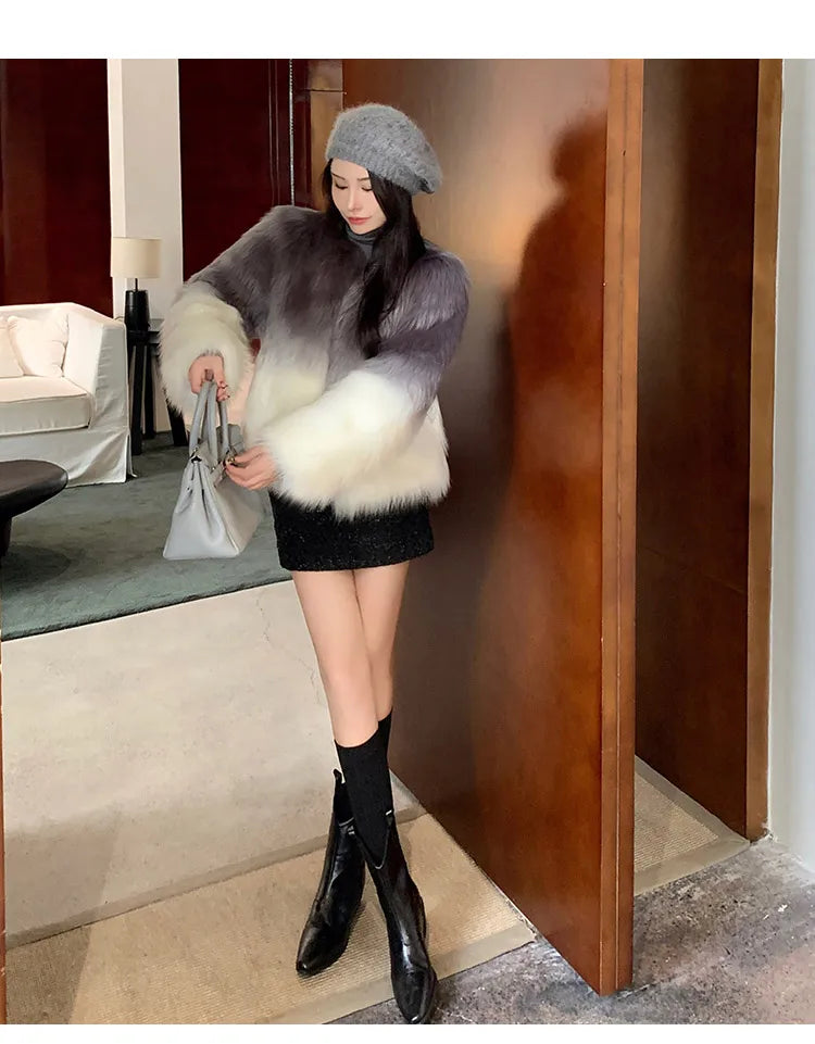 Осеннее женское пальто из искусственного меха лисы с постепенным переходом цвета, шикарный модный зимний ...
