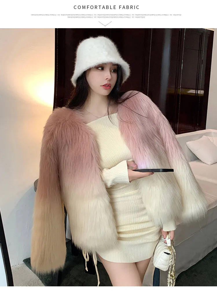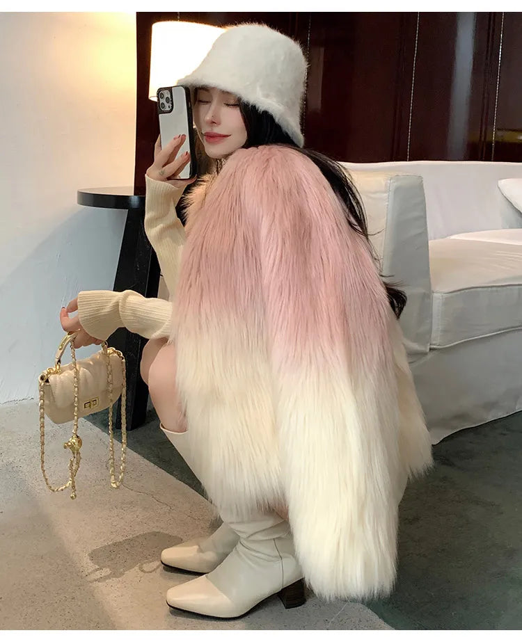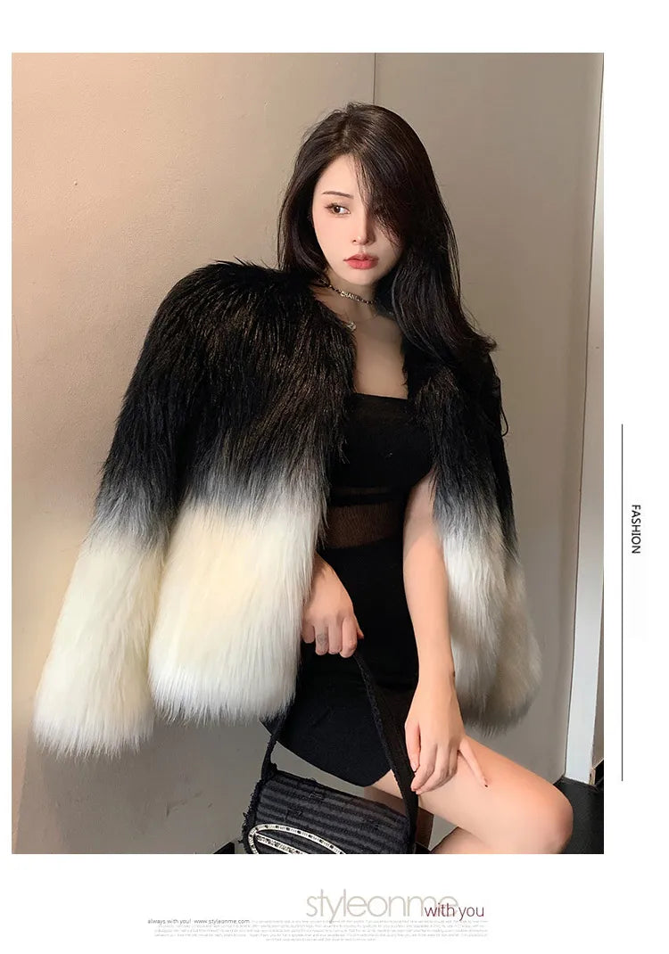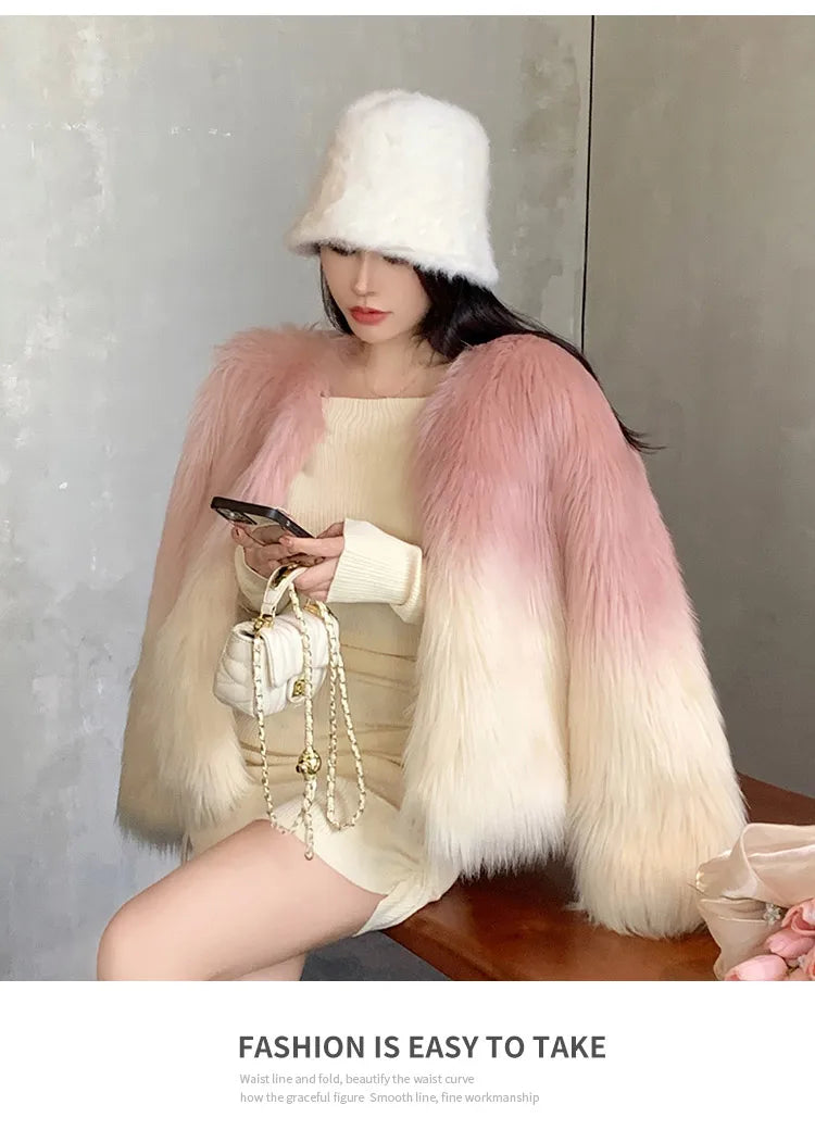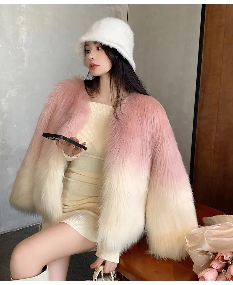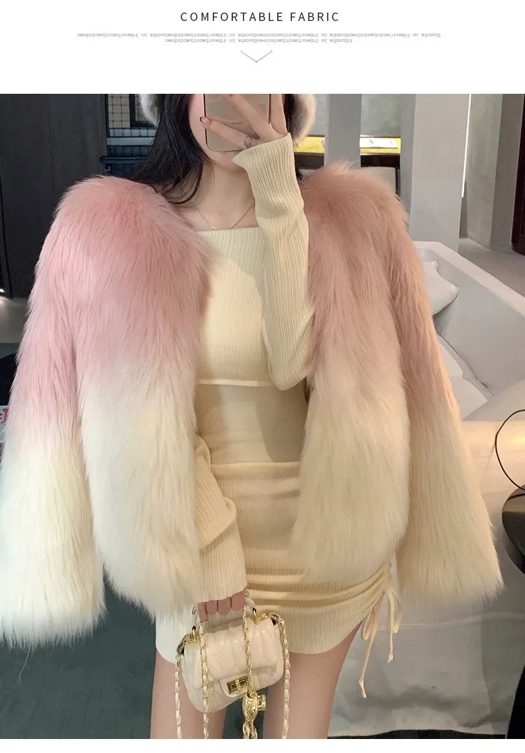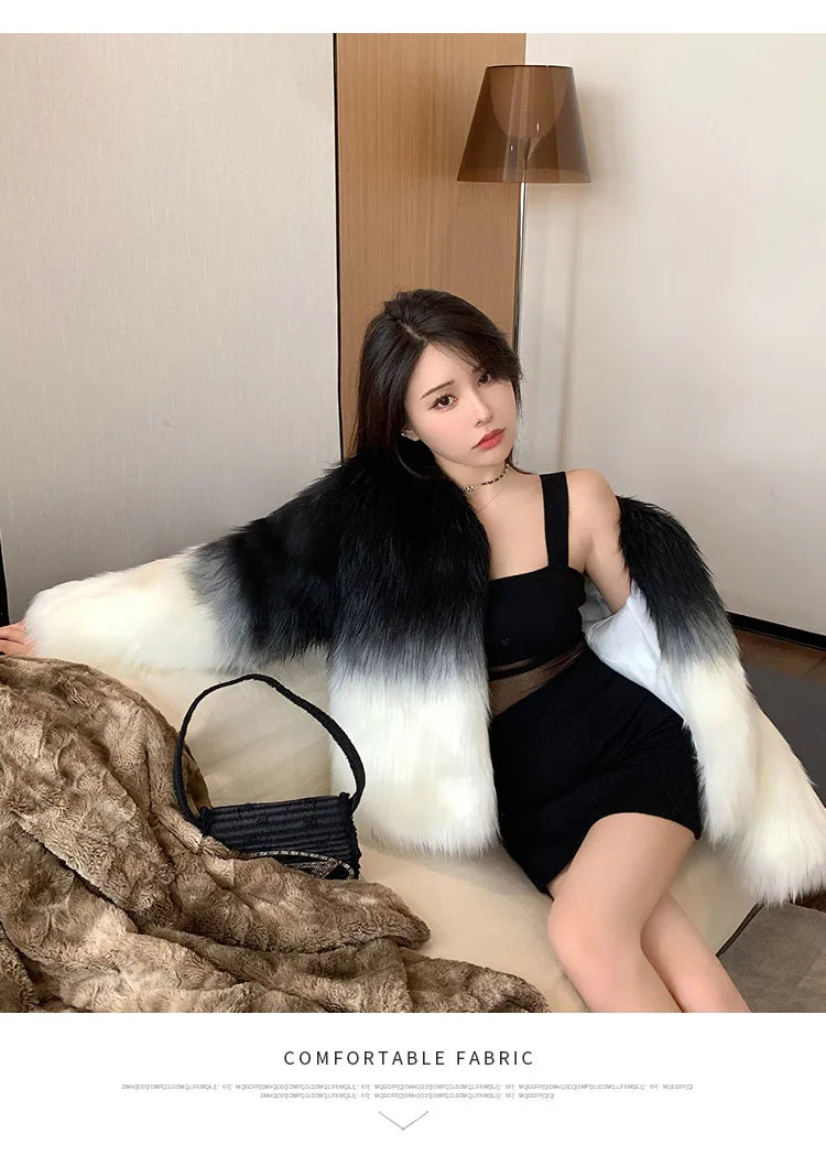 Осеннее женское пальто из искусственного меха лисы с постепенным переходом цвета, шикарный модный зимний ...