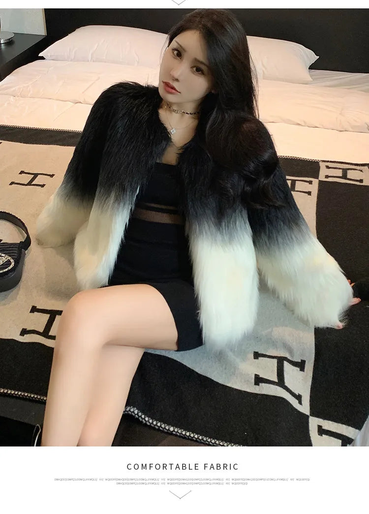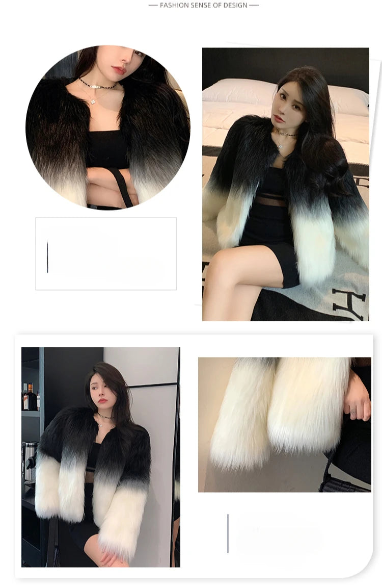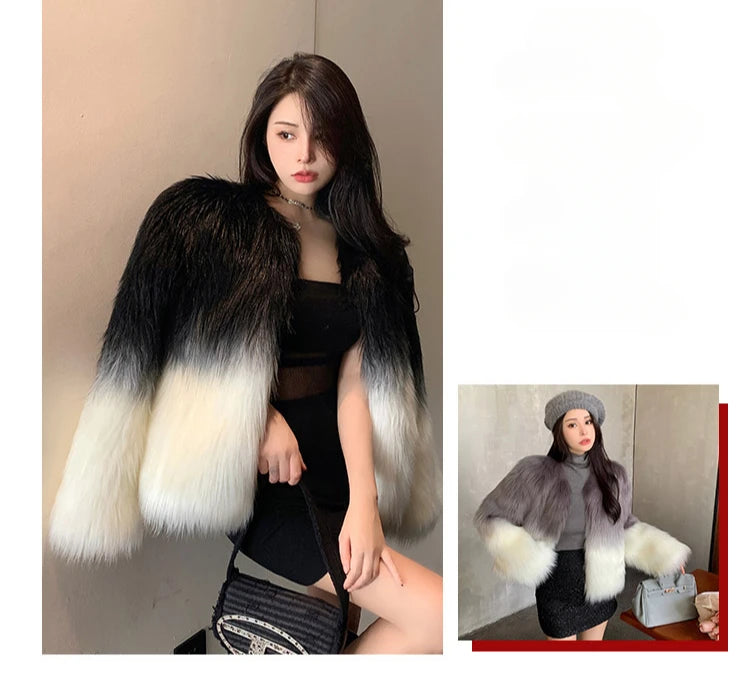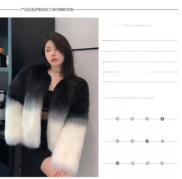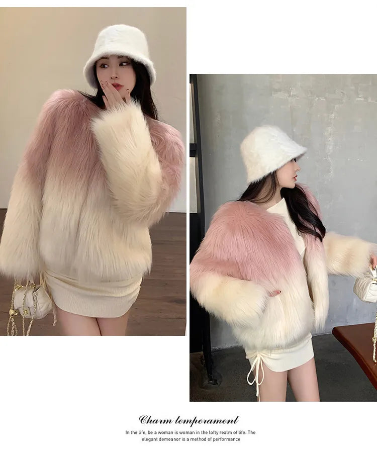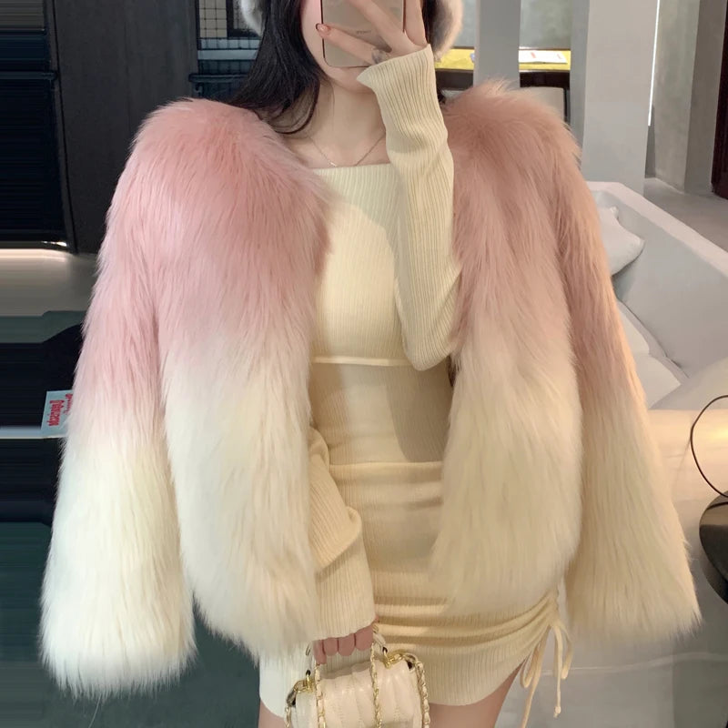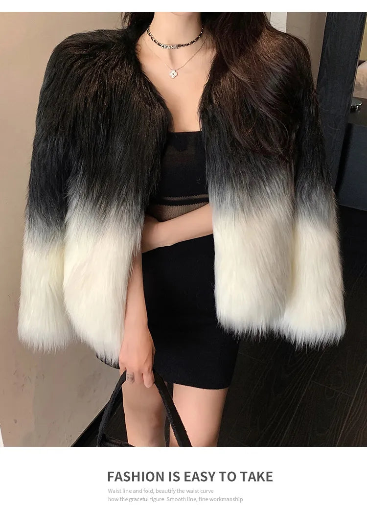 Осеннее женское пальто из искусственного меха лисы с постепенным переходом цвета, шикарный модный зимний ...