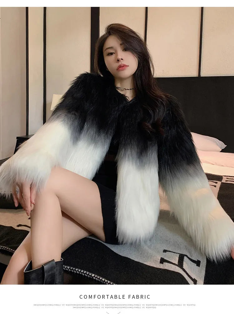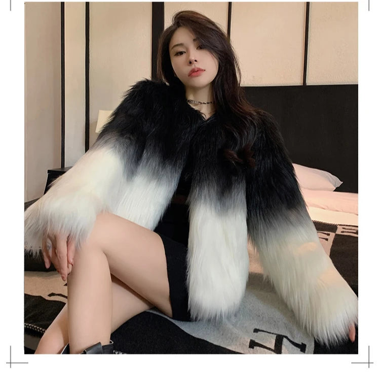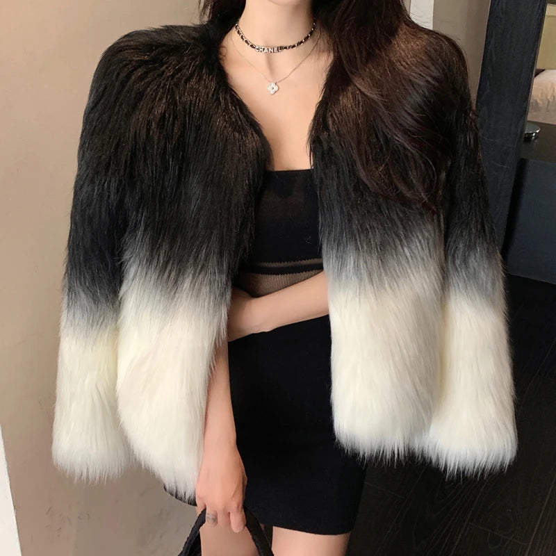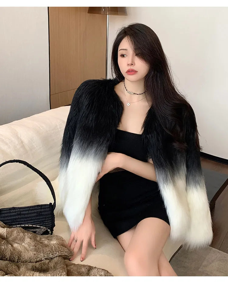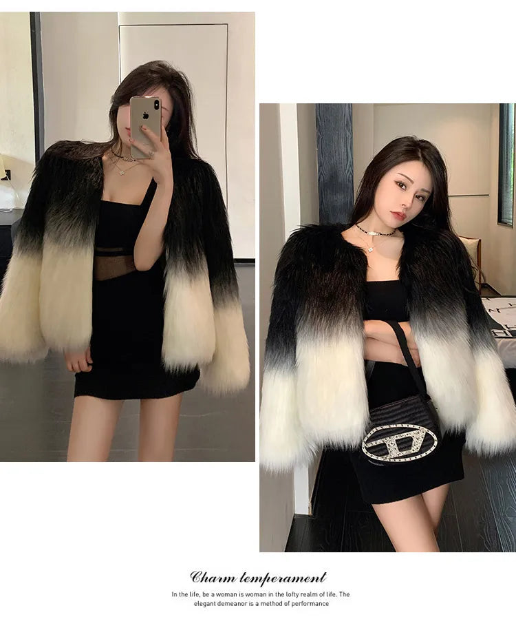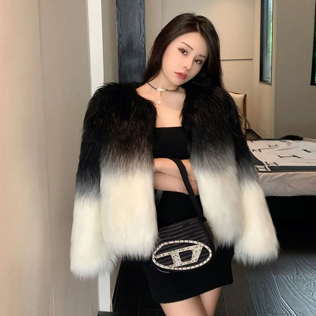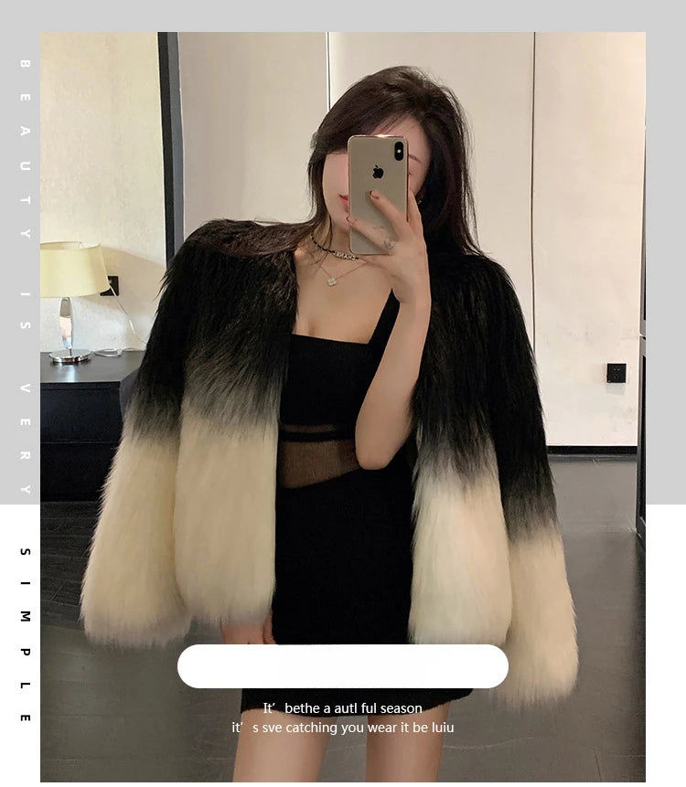 Осеннее женское пальто из искусственного меха лисы с постепенным переходом цвета, шикарный модный зимний ...