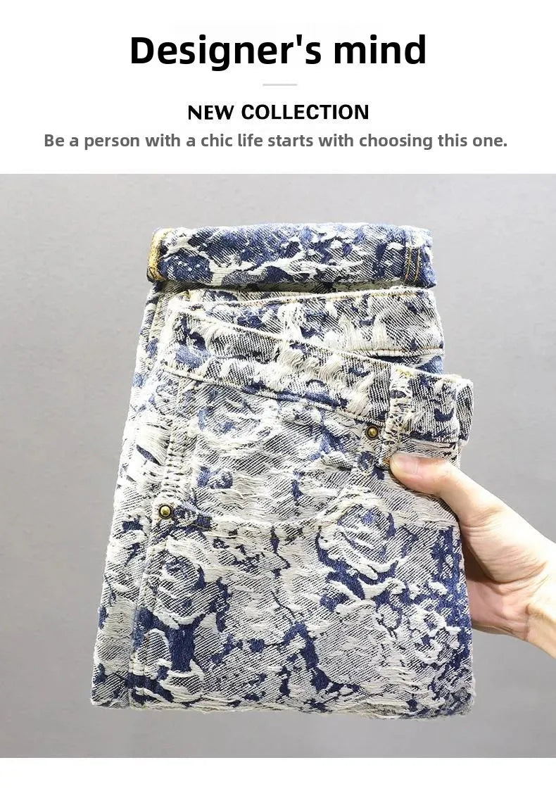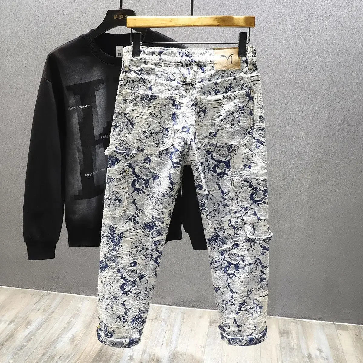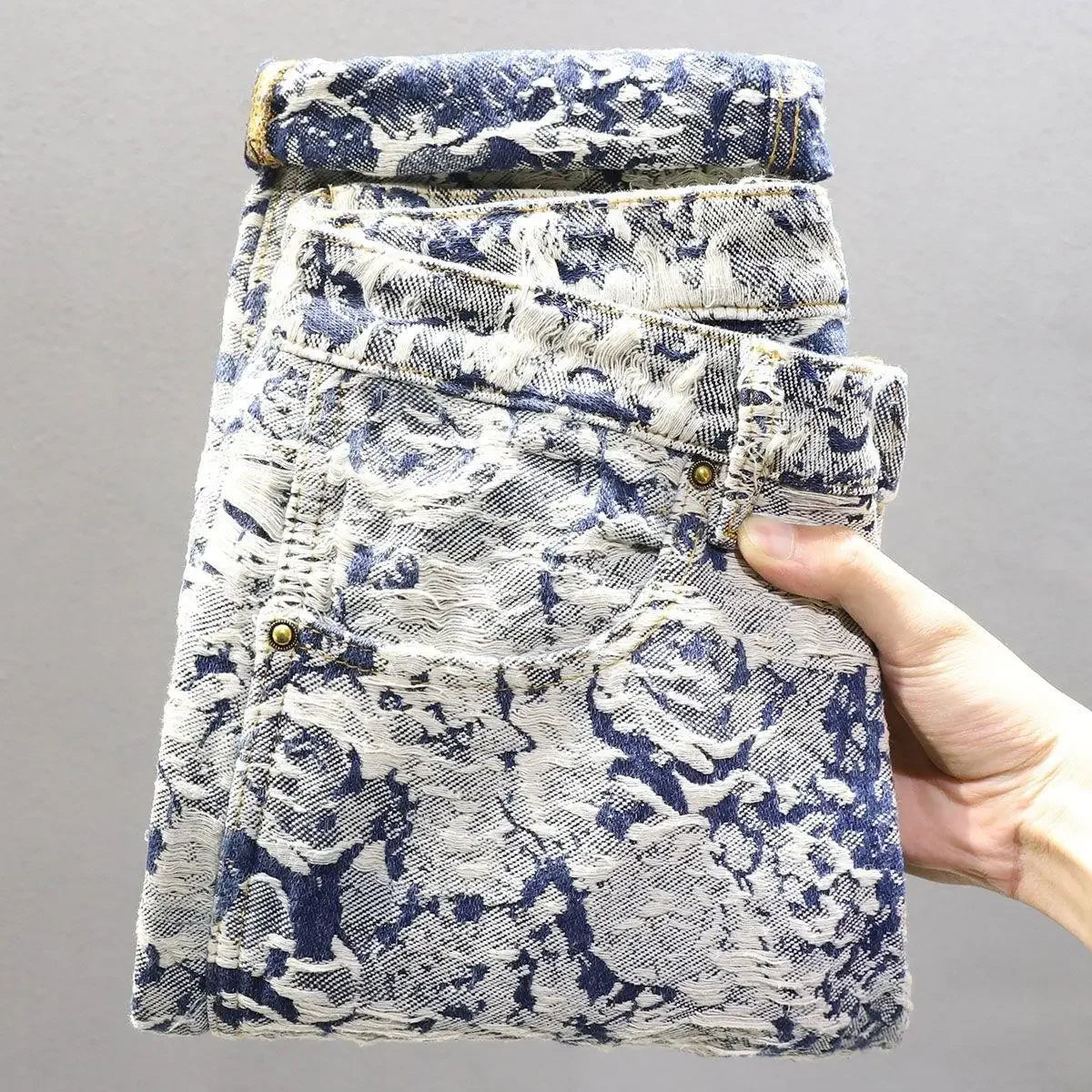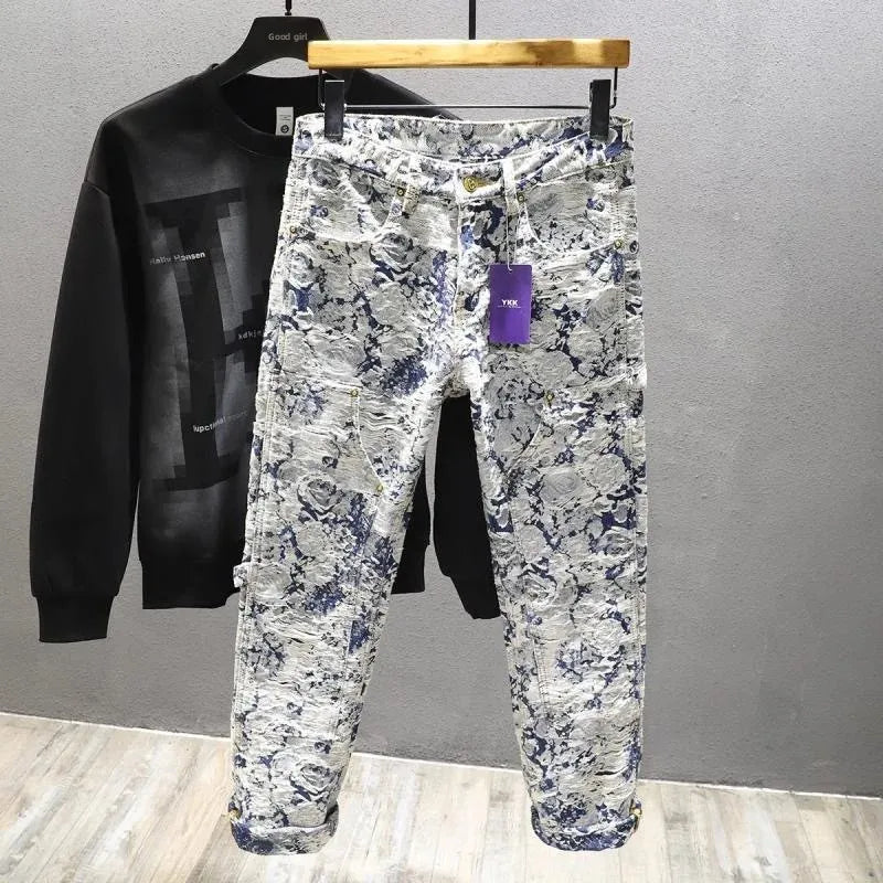 Осенне-зимний дизайн, мужские джинсы с цветочным принтом, повседневные, униве...
