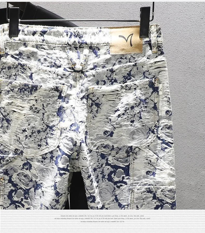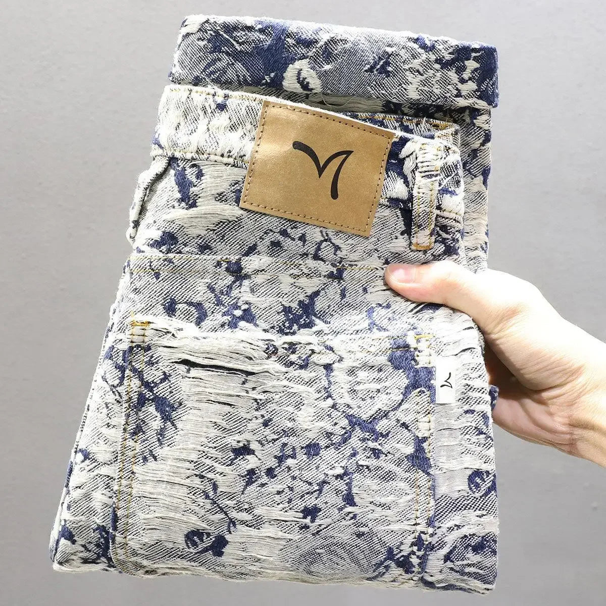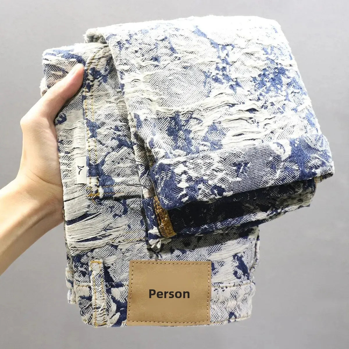 Осенне-зимний дизайн, мужские джинсы с цветочным принтом, повседневные, униве...