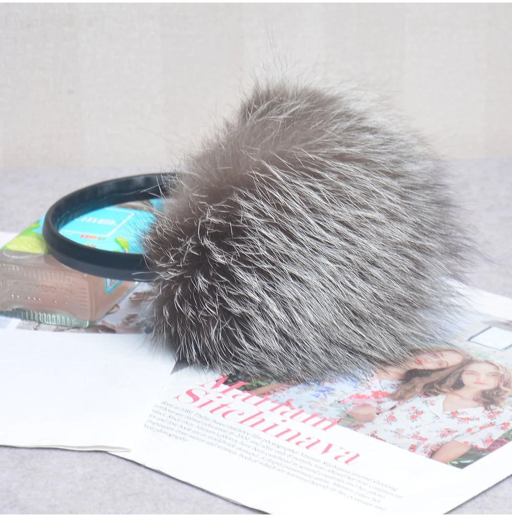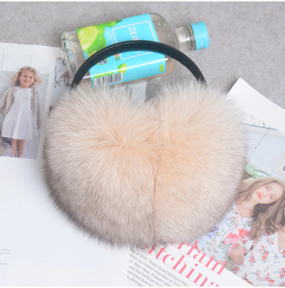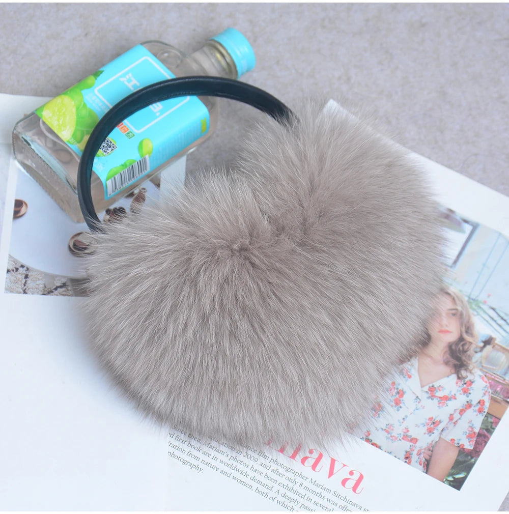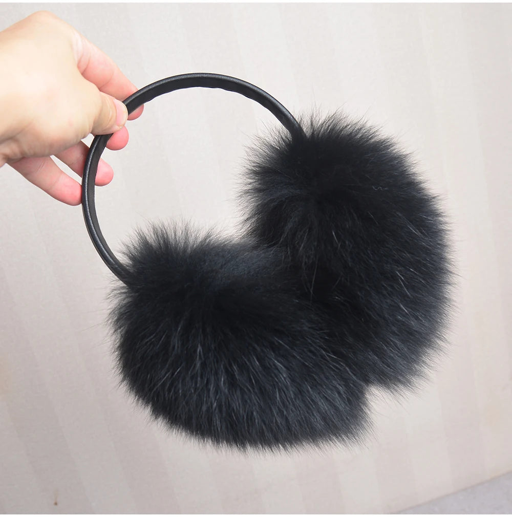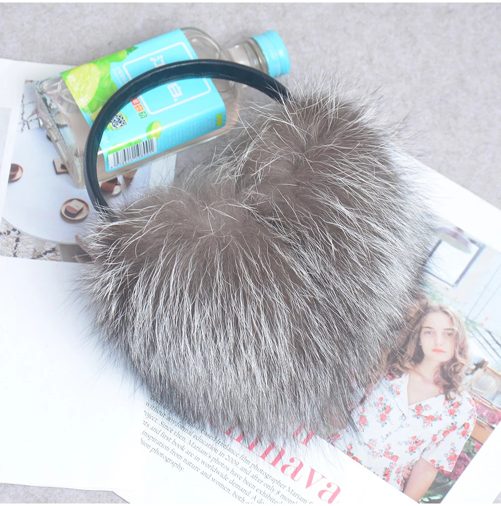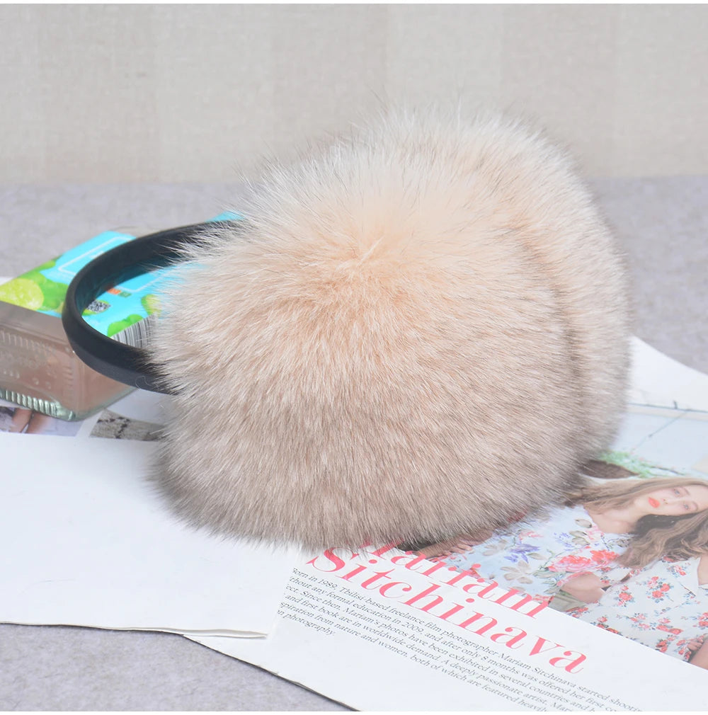 Стильные женские плюшевые наушники из лисьего меха, зимние, пушистые, с больш...