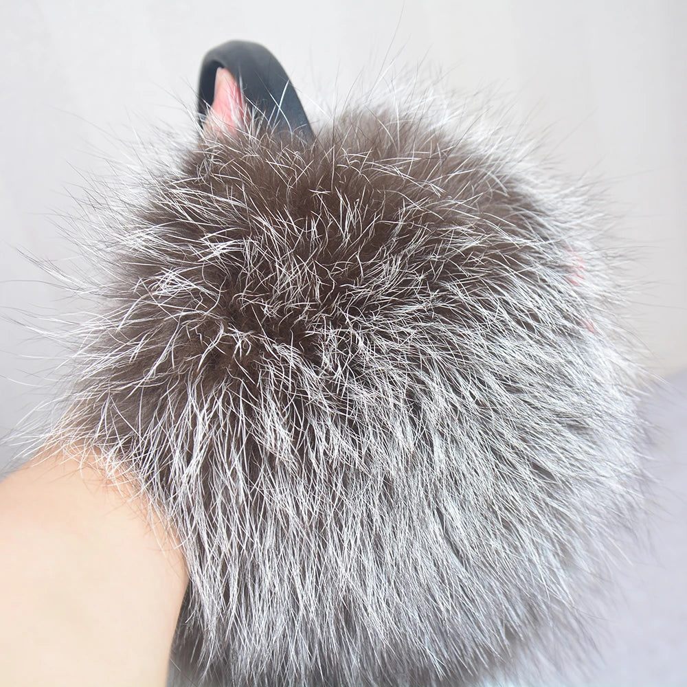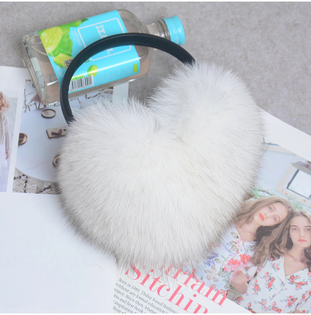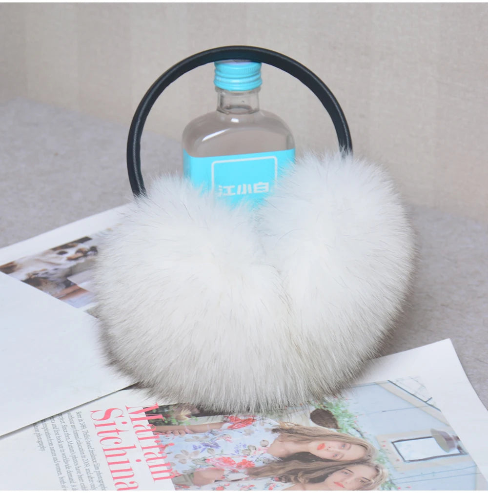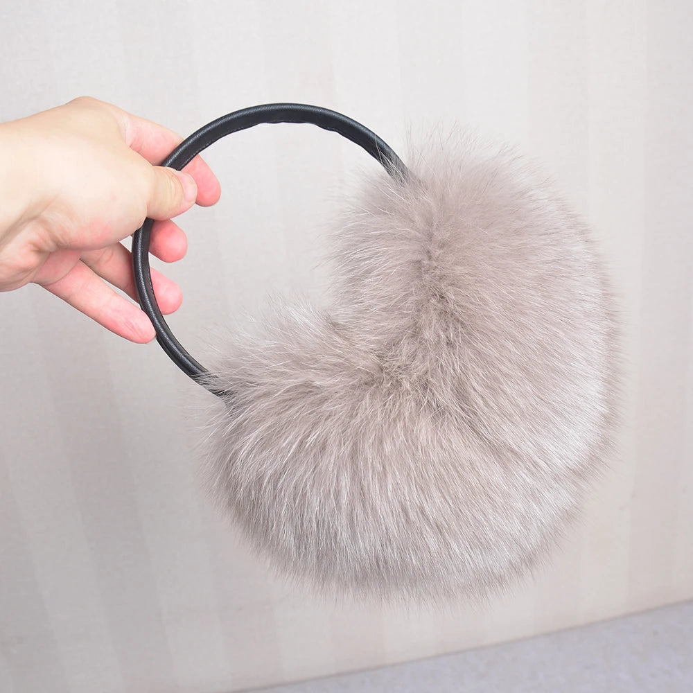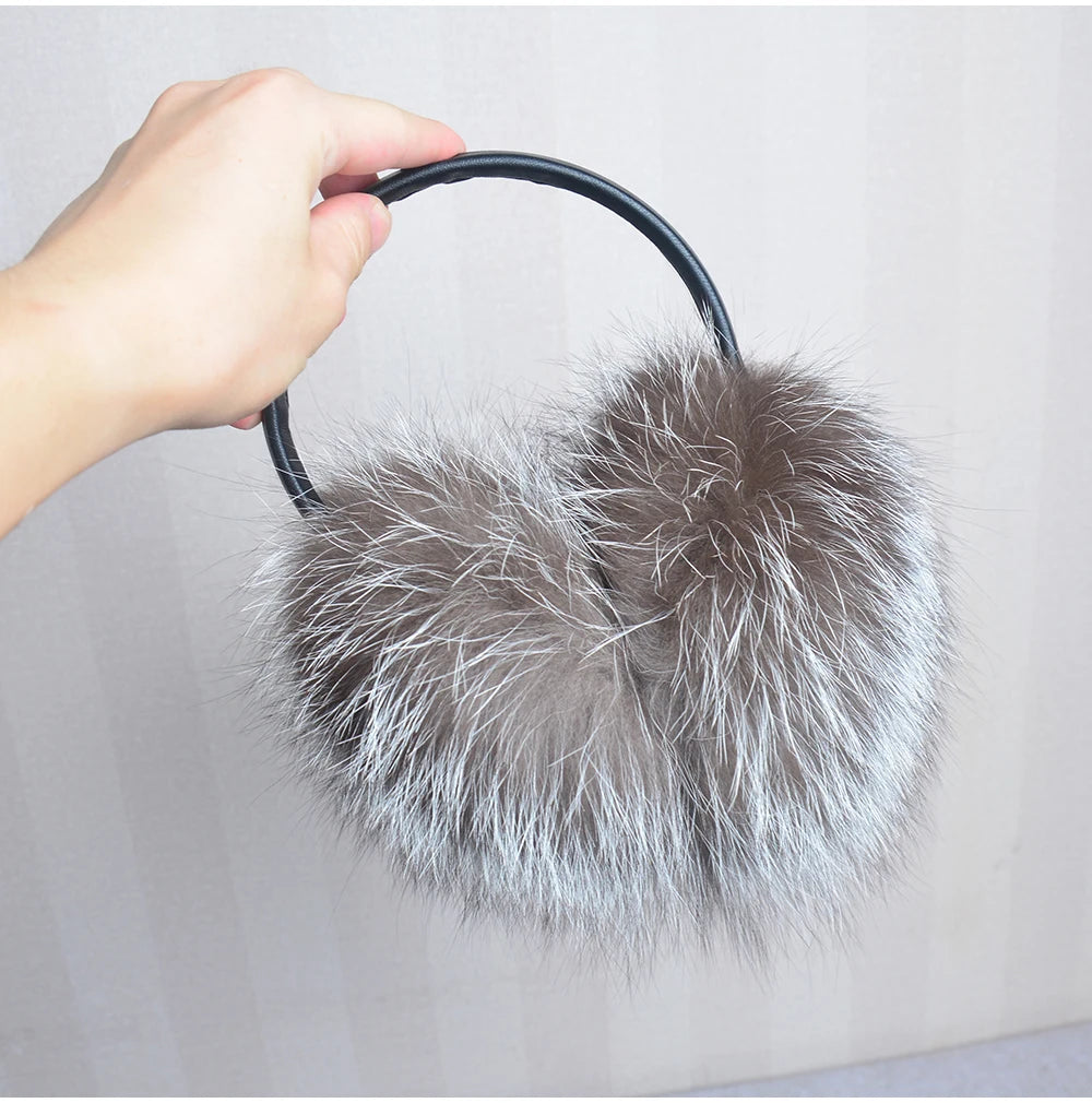 Стильные женские плюшевые наушники из лисьего меха, зимние, пушистые, с больш...