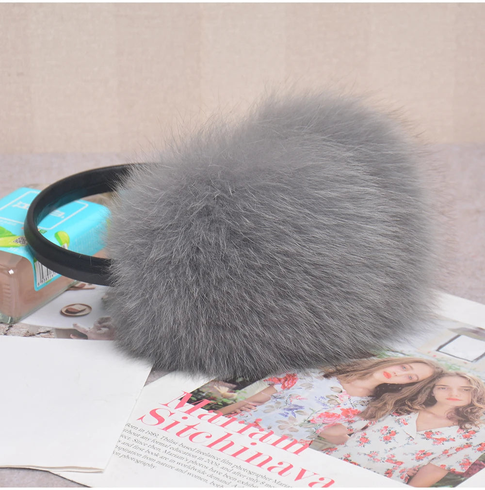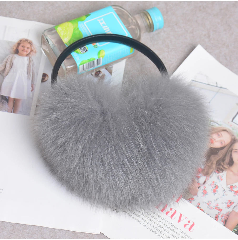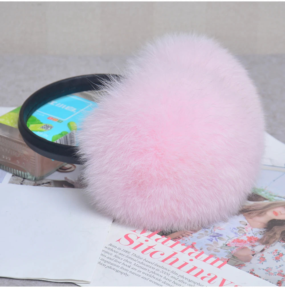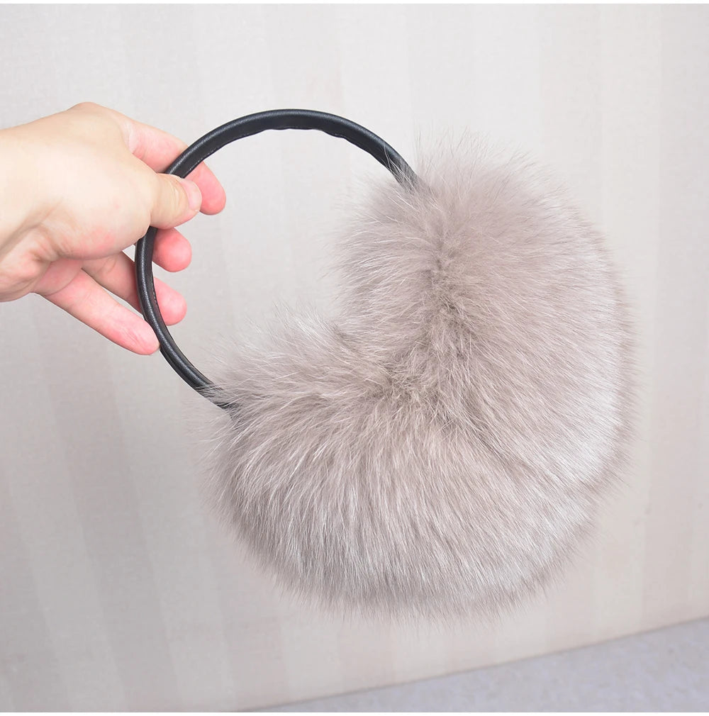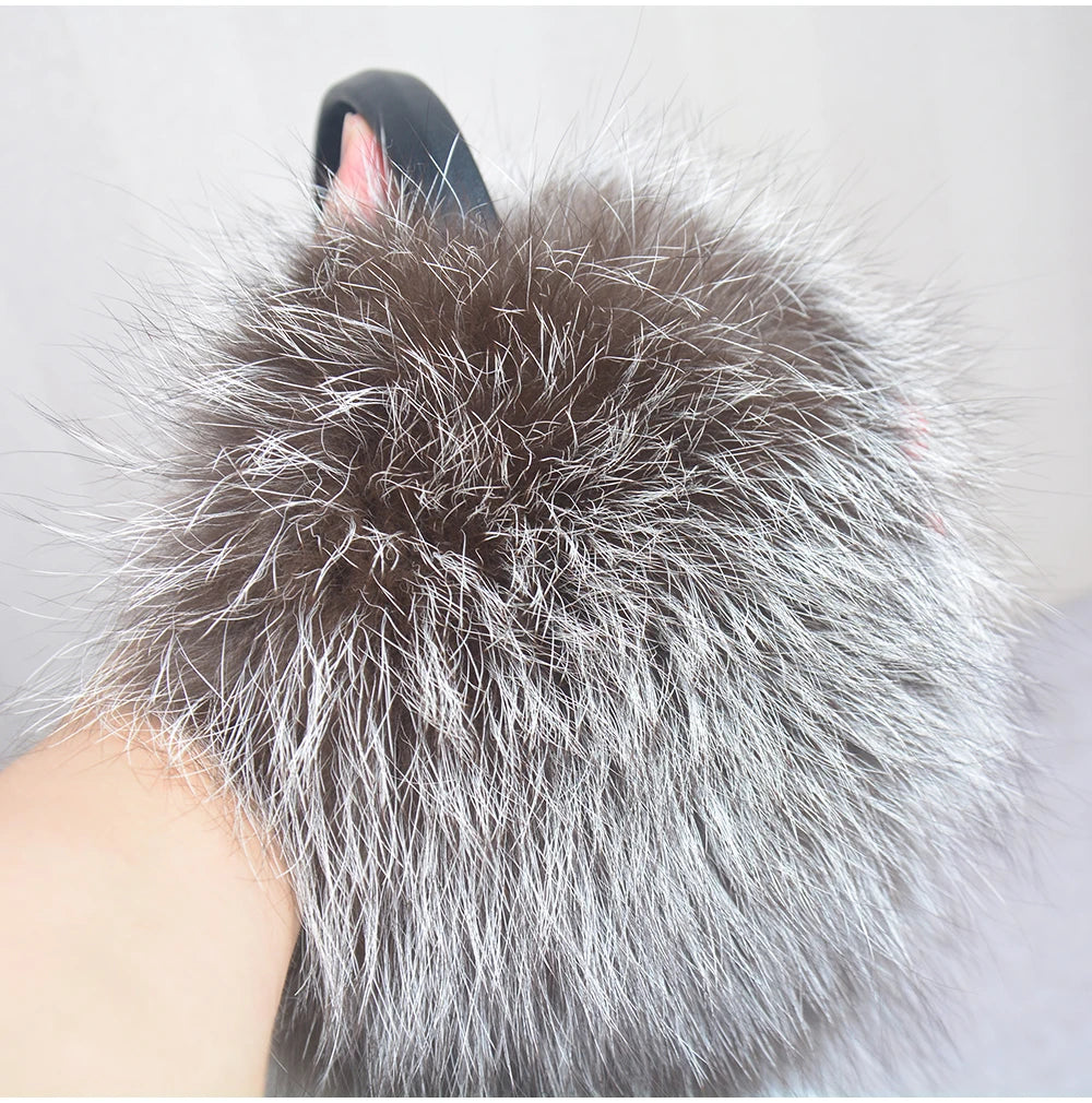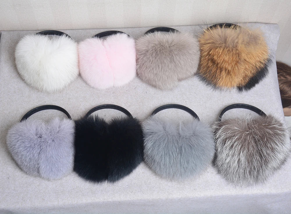 Стильные женские плюшевые наушники из лисьего меха, зимние, пушистые, с больш...