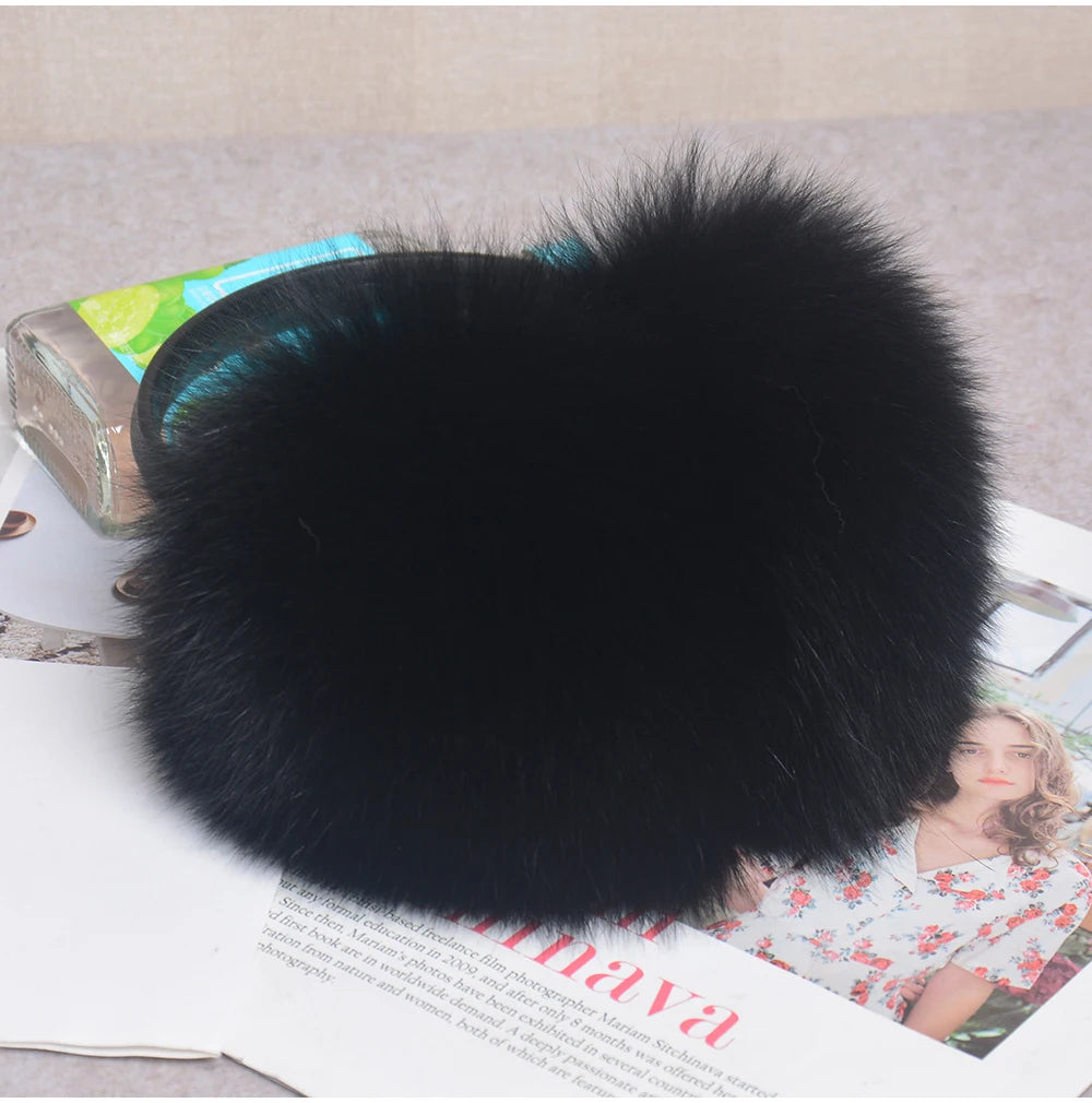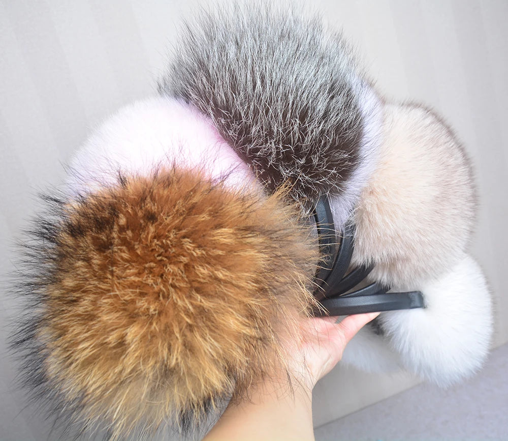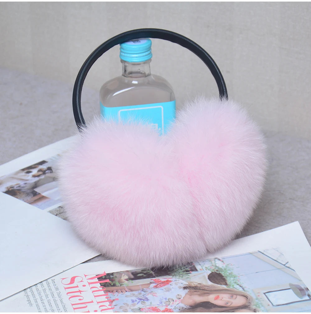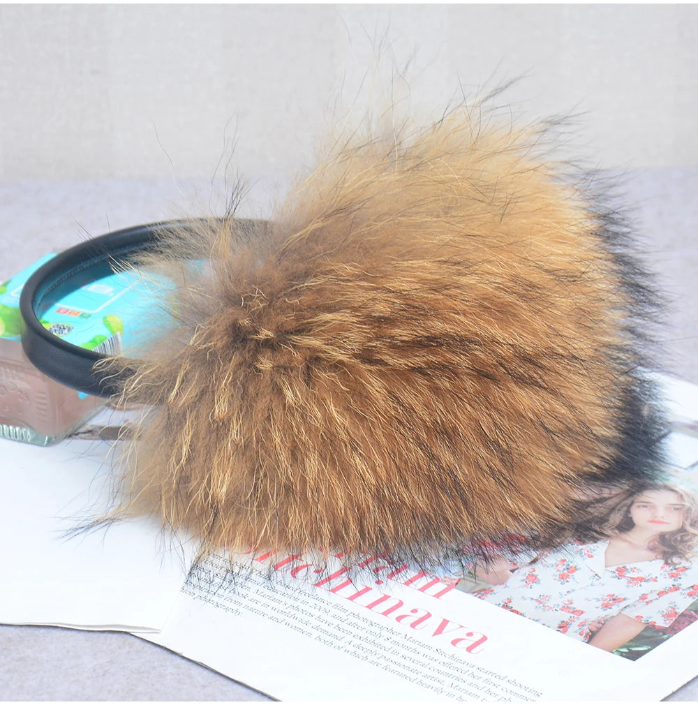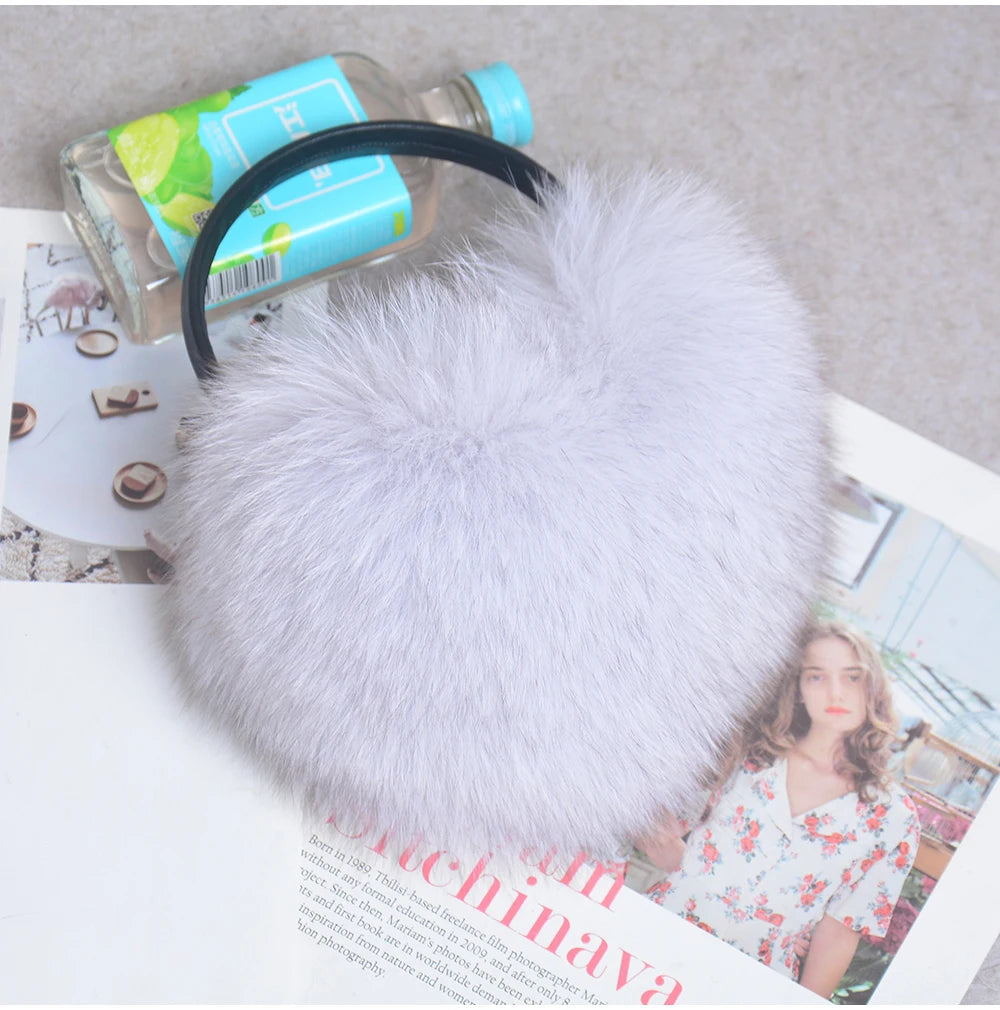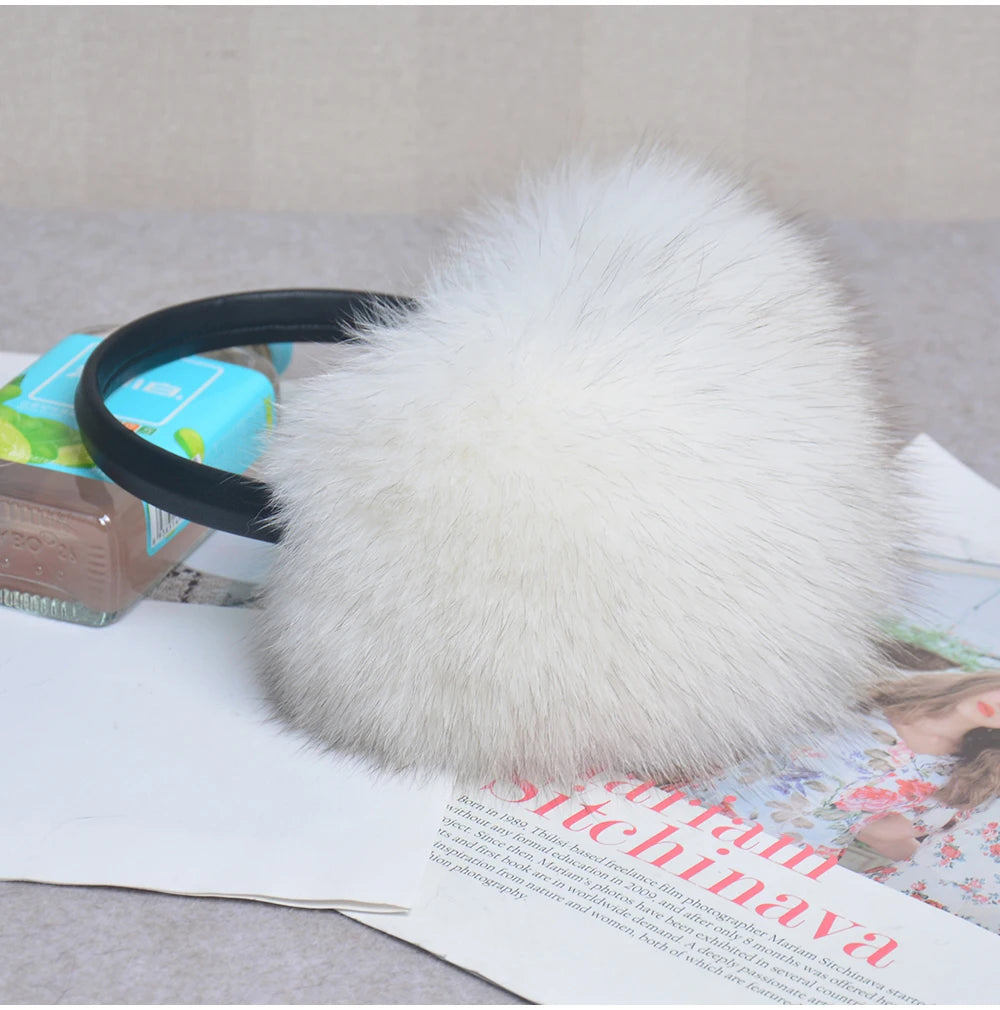 Стильные женские плюшевые наушники из лисьего меха, зимние, пушистые, с больш...
