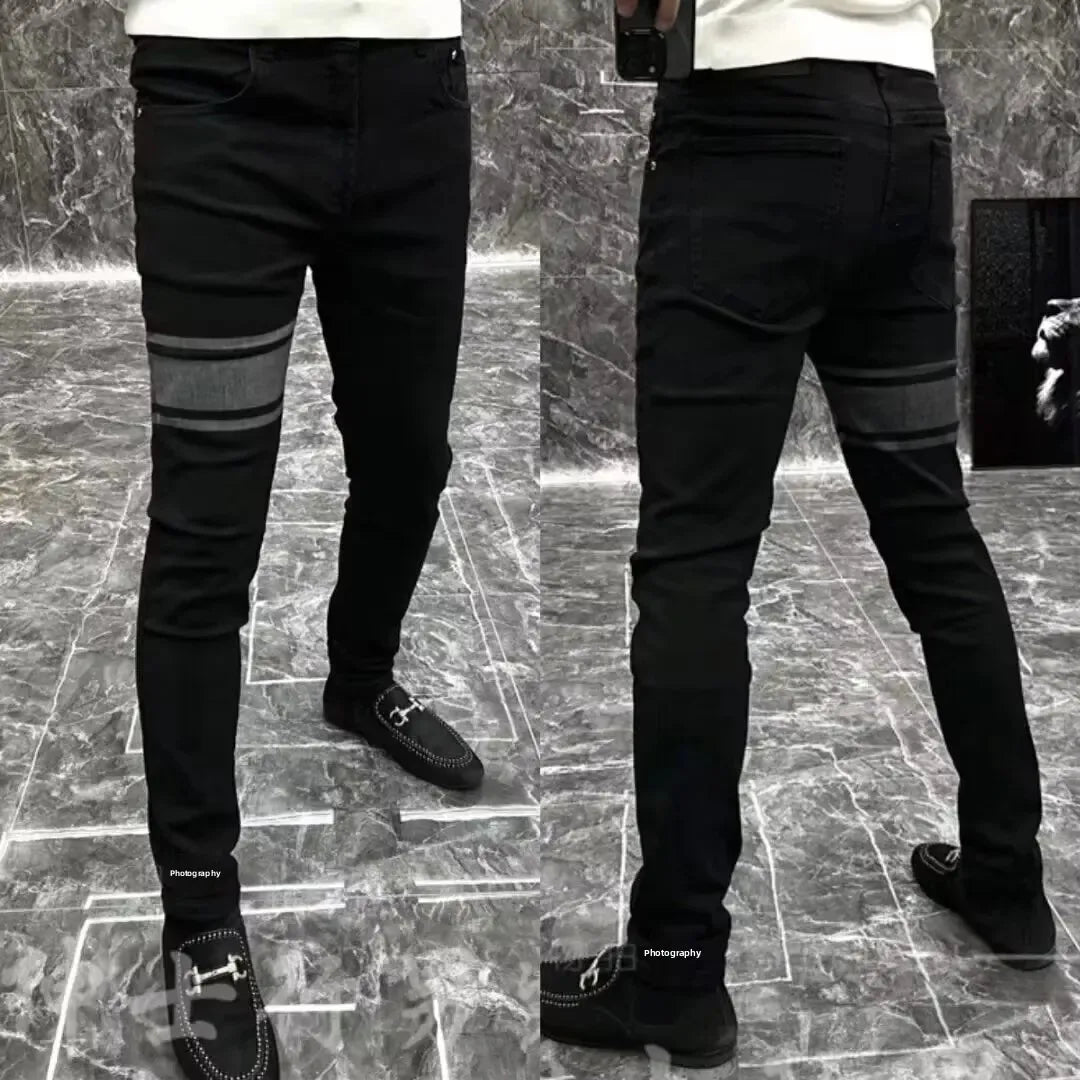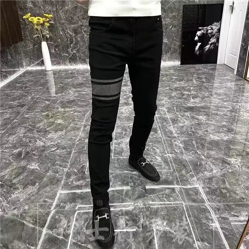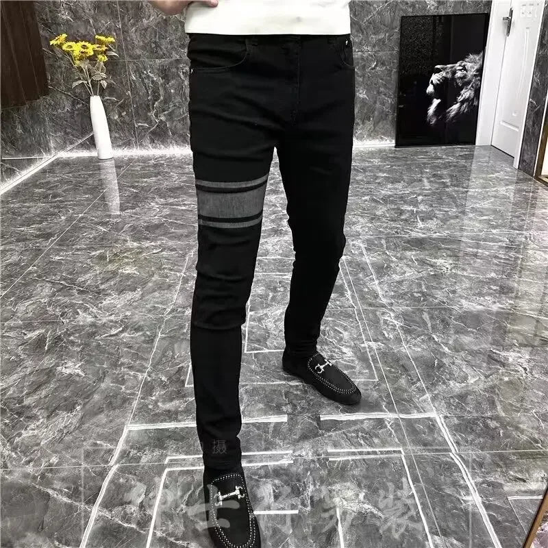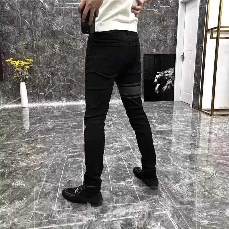 Мужские облегающие джинсы, стиль сезона, черные эластичные повседневные длинн...