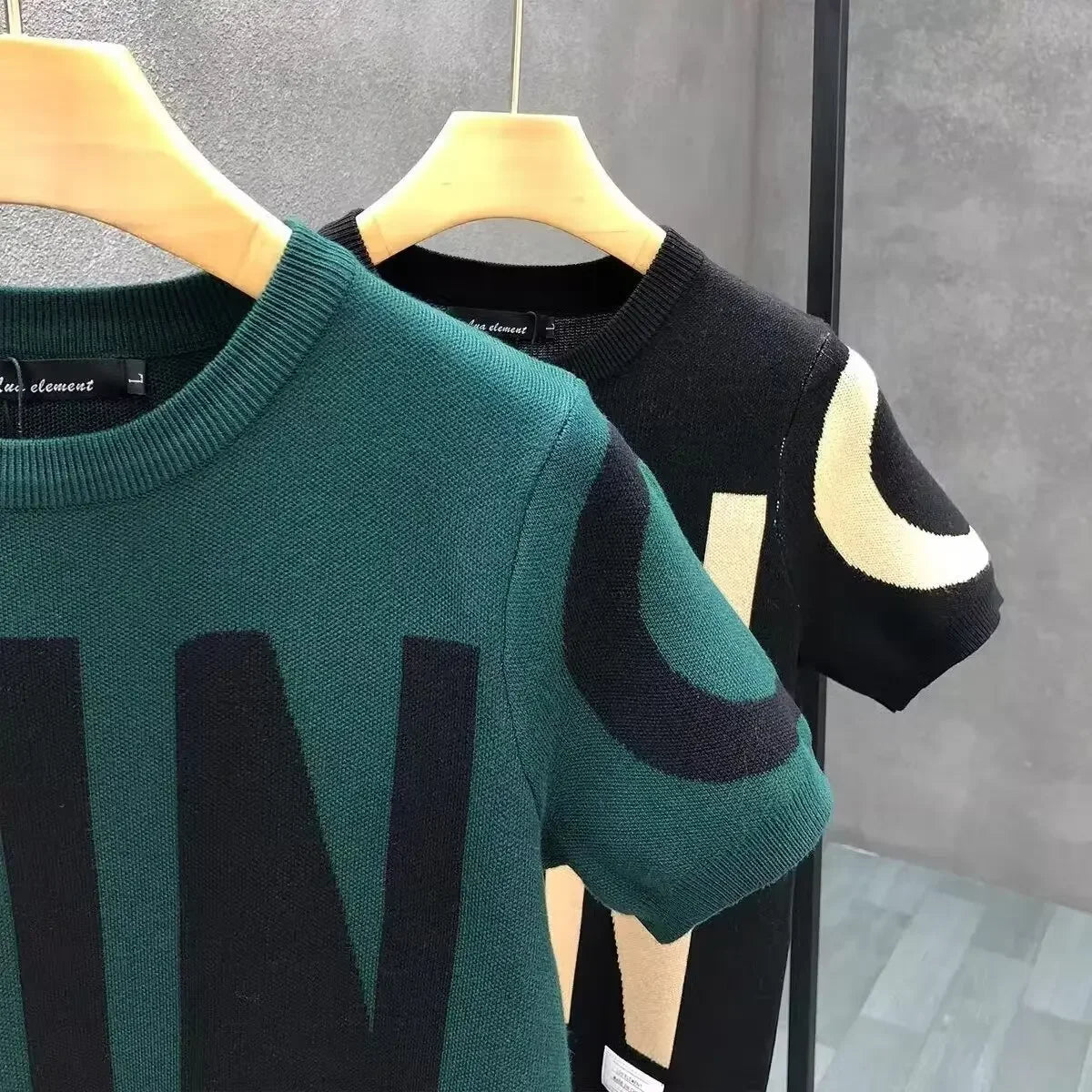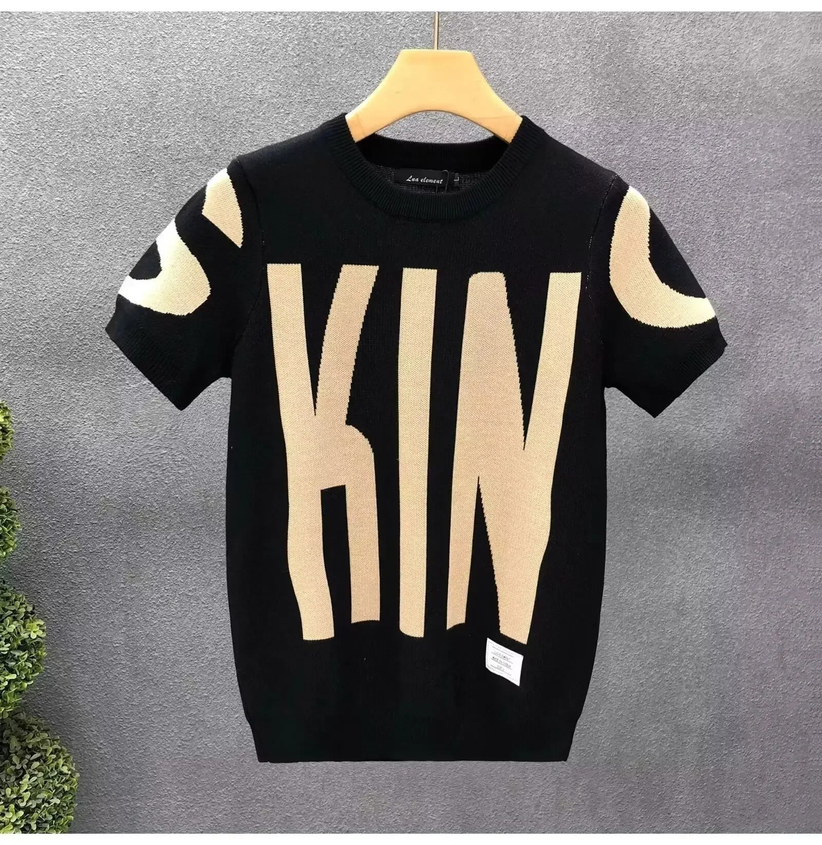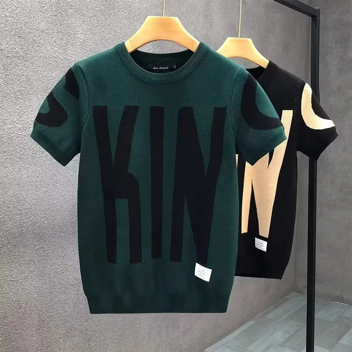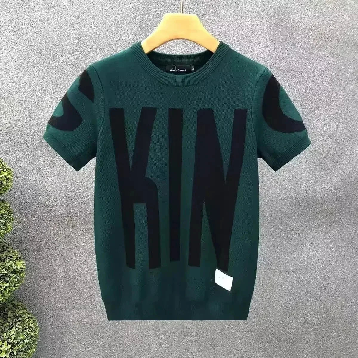 Летняя мужская трикотажная футболка Ice Silk с коротким рукавом, деловой, пов...