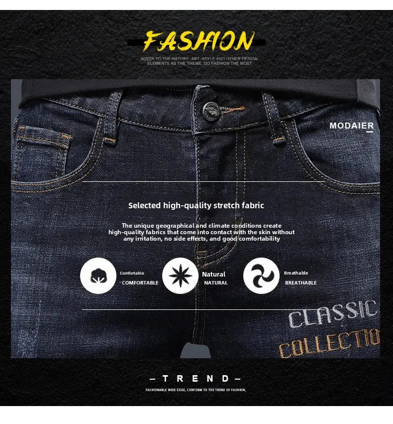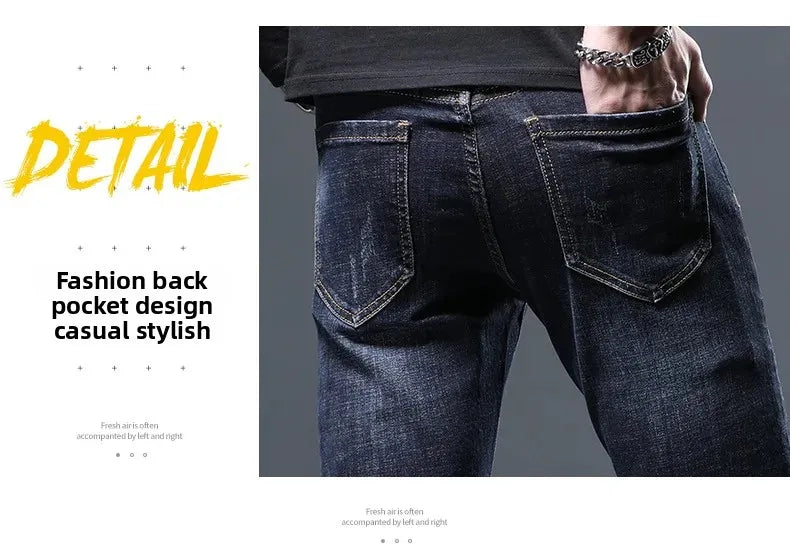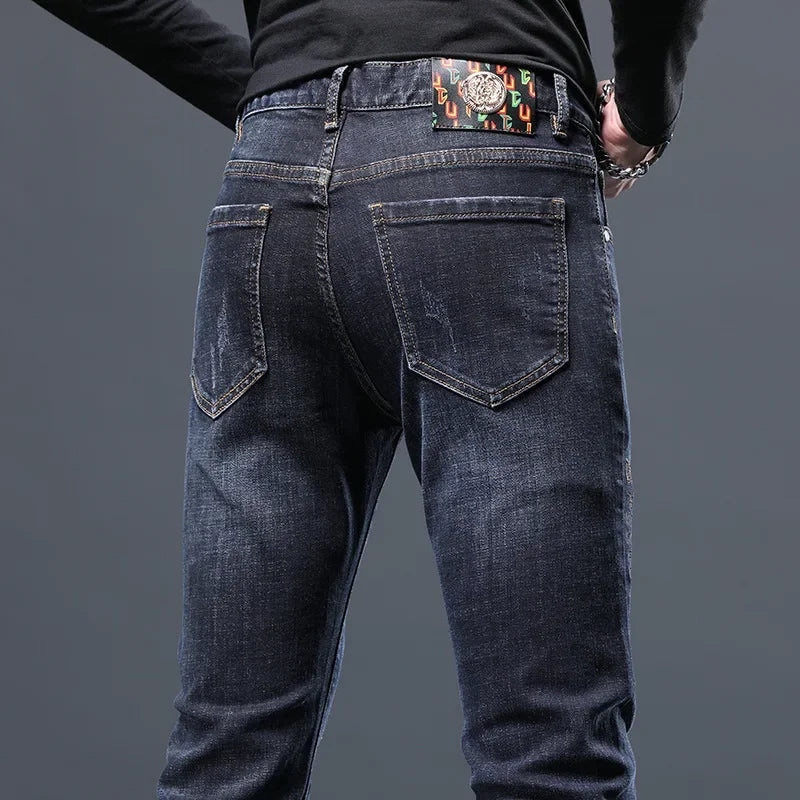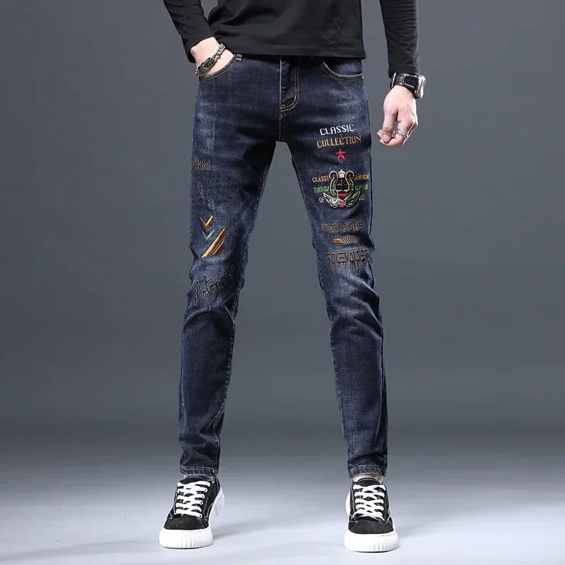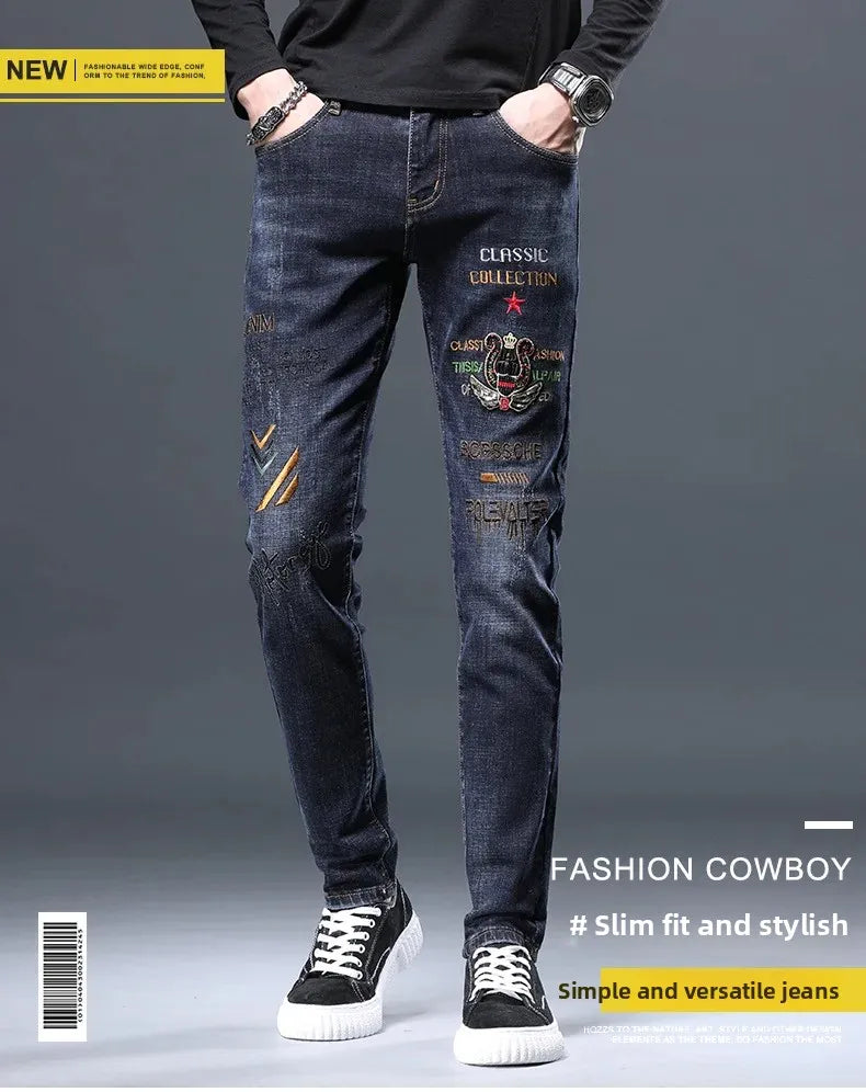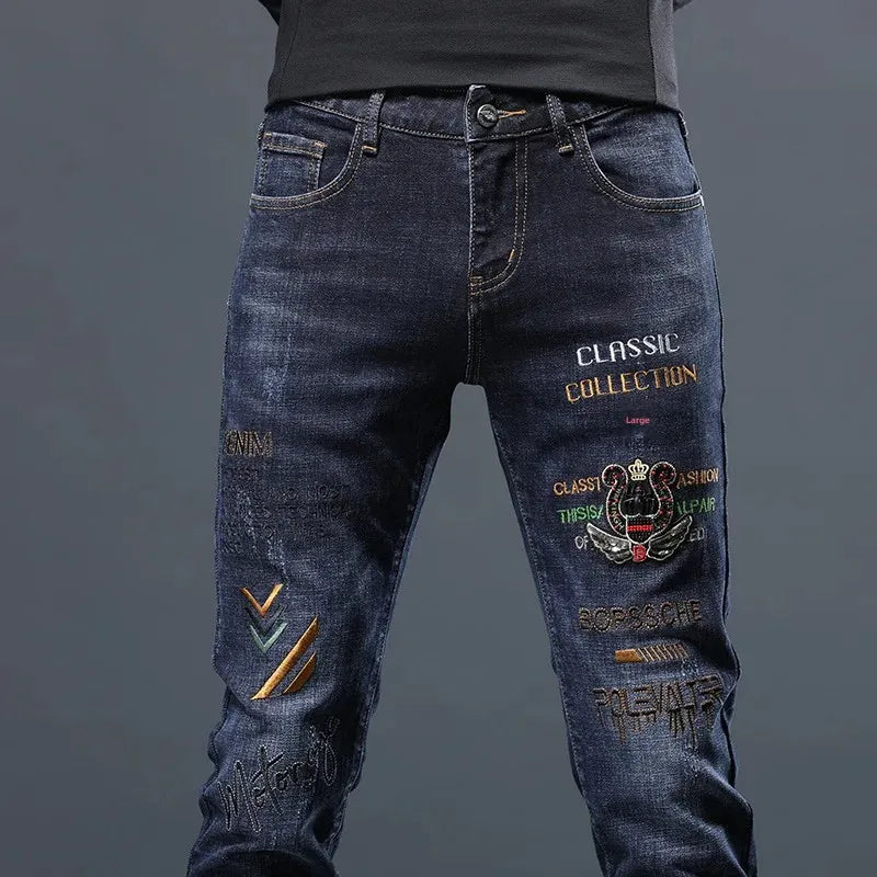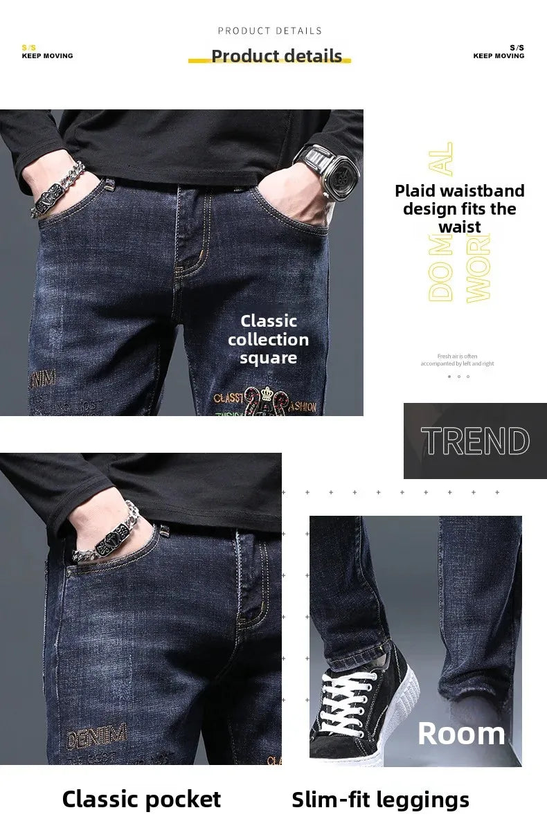 Модные брендовые мужские облегающие джинсы весна-осень с вышитым принтом, эла...
