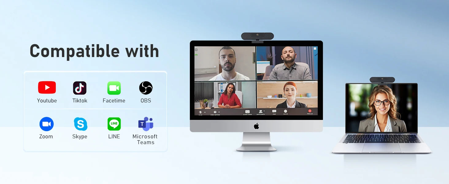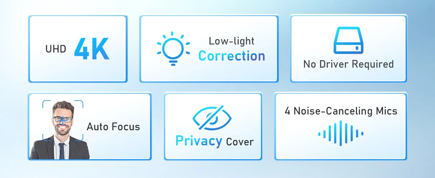 Веб-камера Vizolink 4K UHD, 8-мегапиксельная веб-камера, 4 микрофона с шумопо...