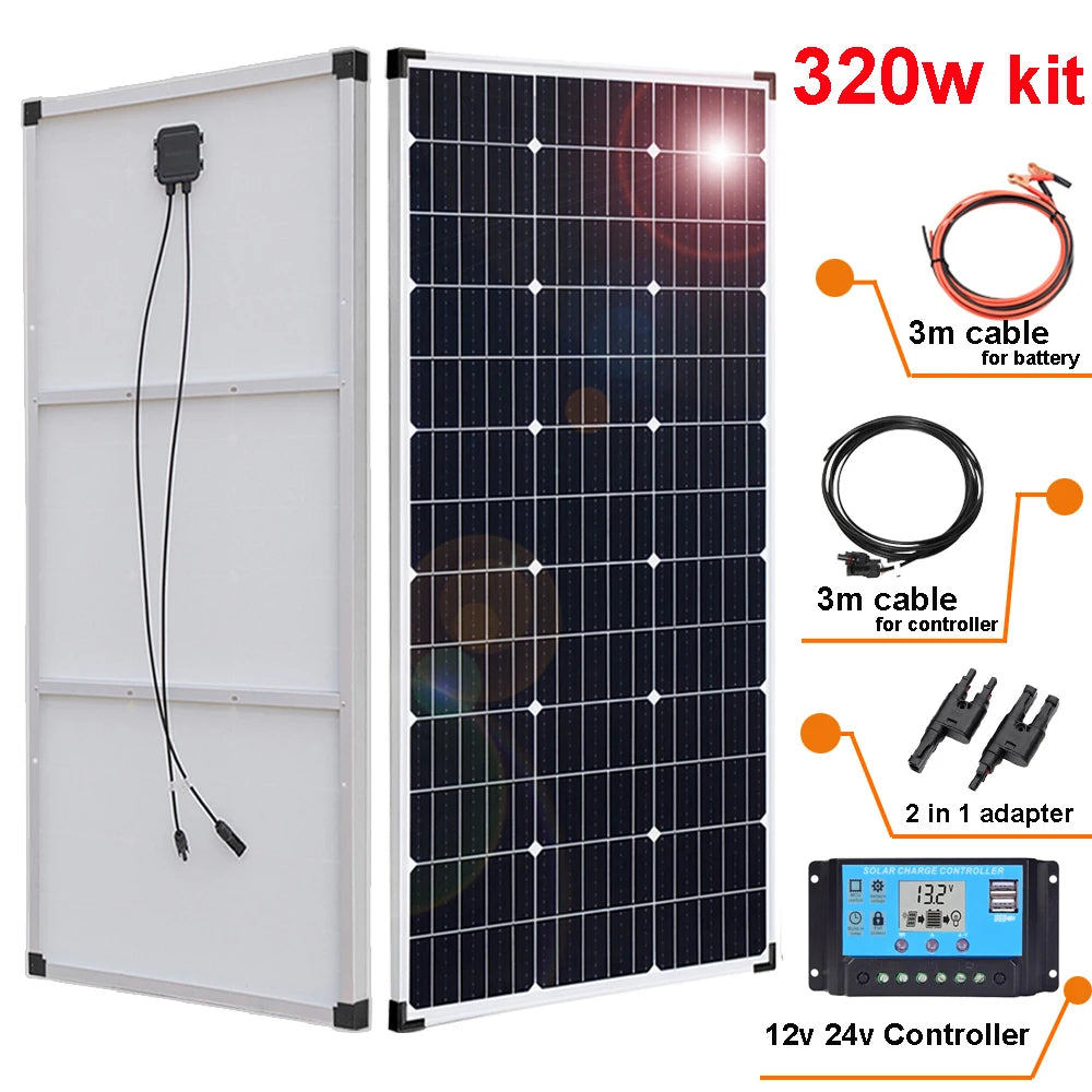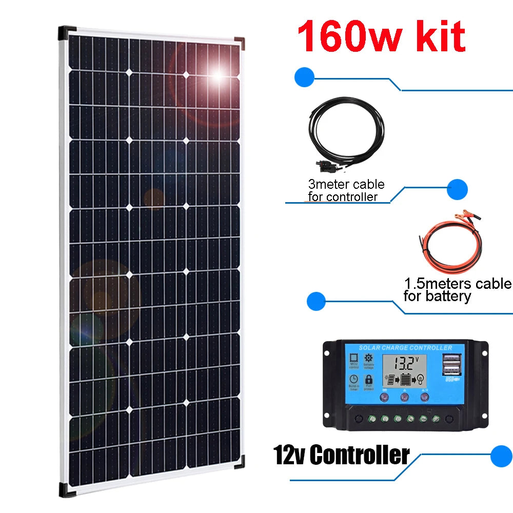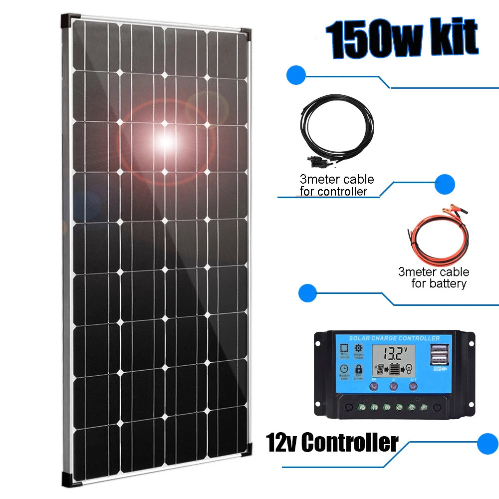 12 В солнечная панель алюминиевая рама комплект полный 300 Вт 150 Вт фотоэлектрическая панель кемпер кара...