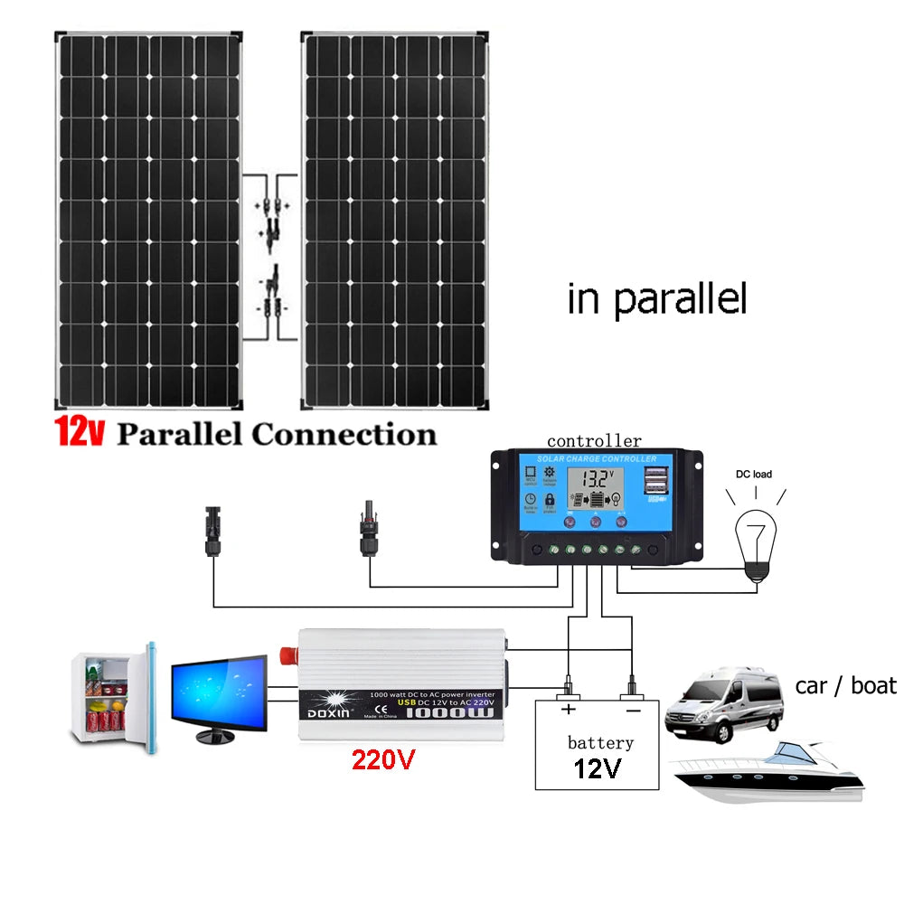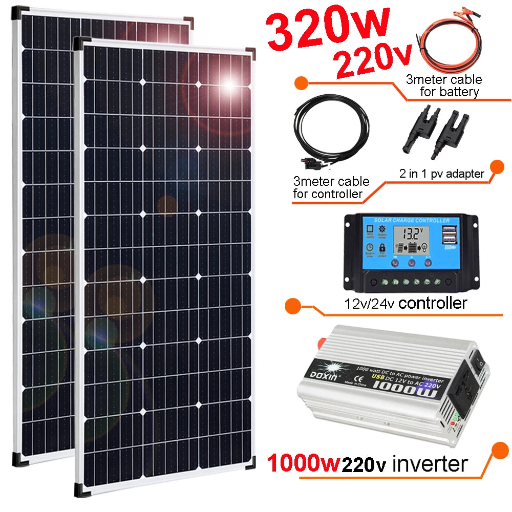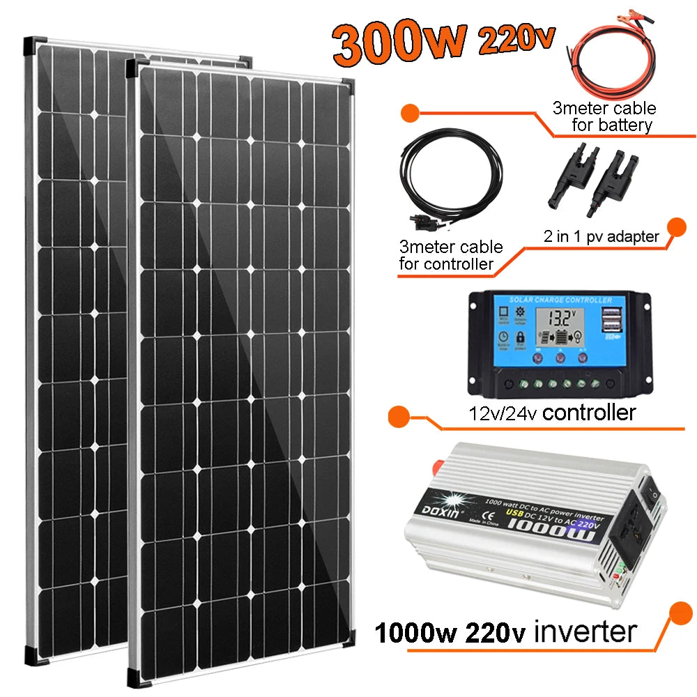 для цвета "300 Вт 220 В 1000 Вт" : 2 шт. солнечных панелей + контроллер, кабель, адаптер + инвертор 1000 Вт 220 В
