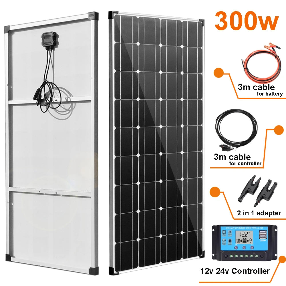 для цвета "300w kit" : 2 шт. солнечных панелей + контроллер, кабель, адаптер