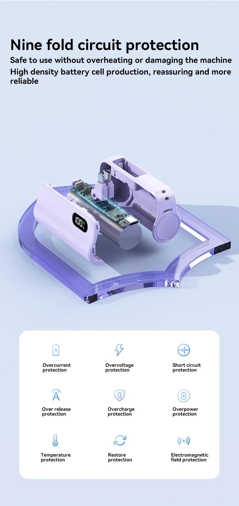 Мини-капсула 50000 мАч, портативный внешний аккумулятор высокой емкости с беспроводной быстрой зарядкой для iPhone, Huawei, Samsung