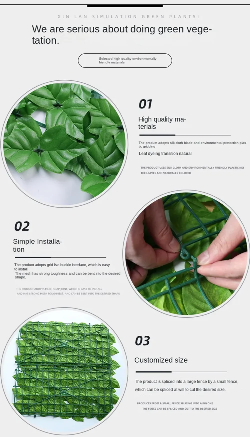 Искусственная изгородь из плюща 50x200 см. Панели для забора из зеленых листь...