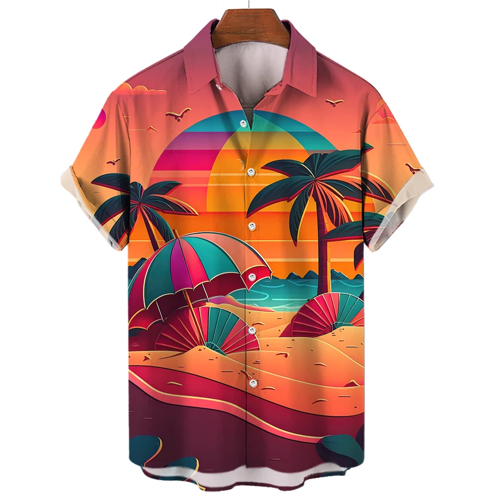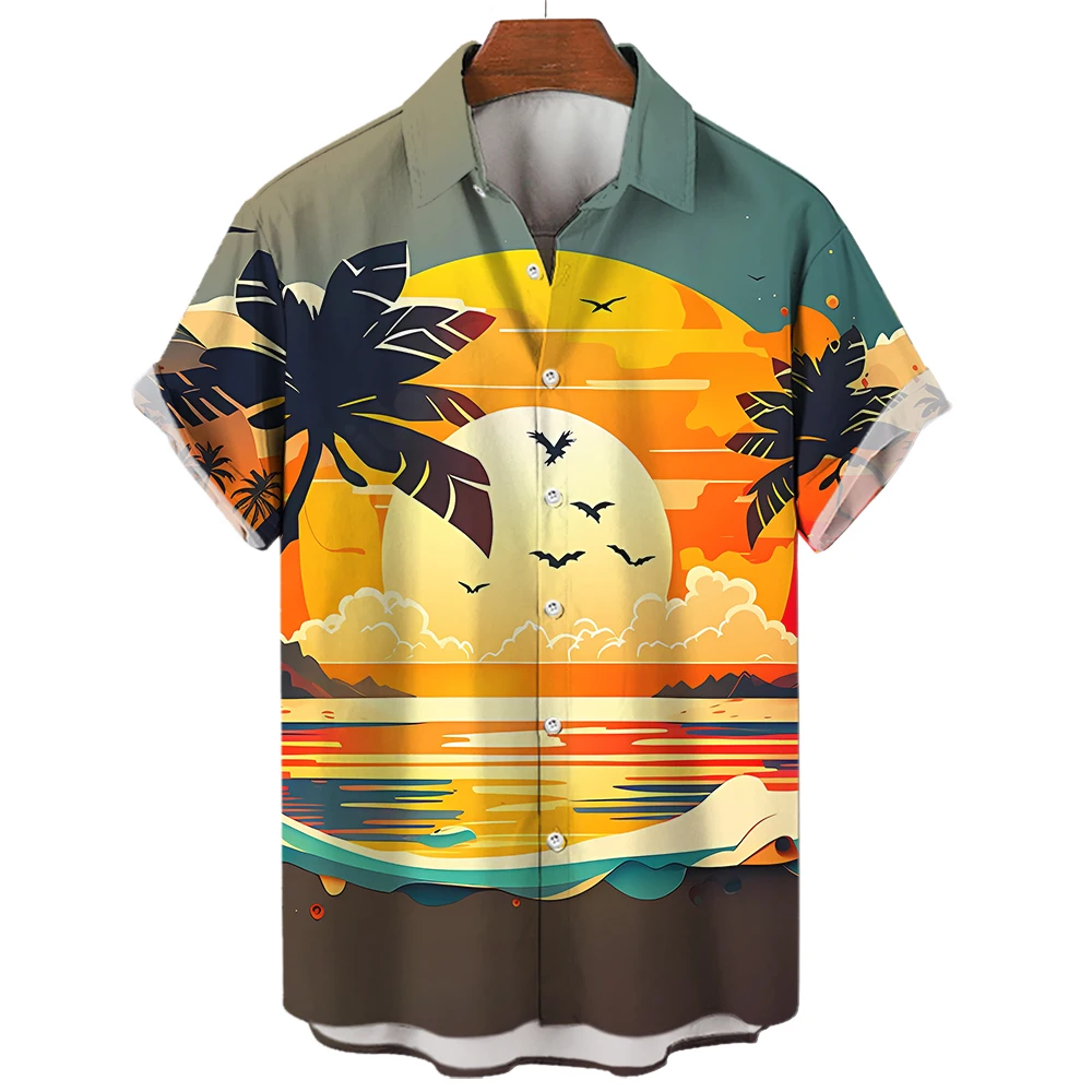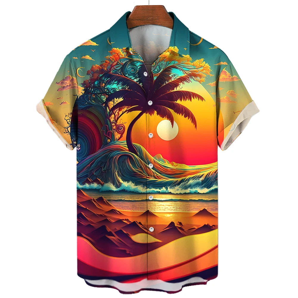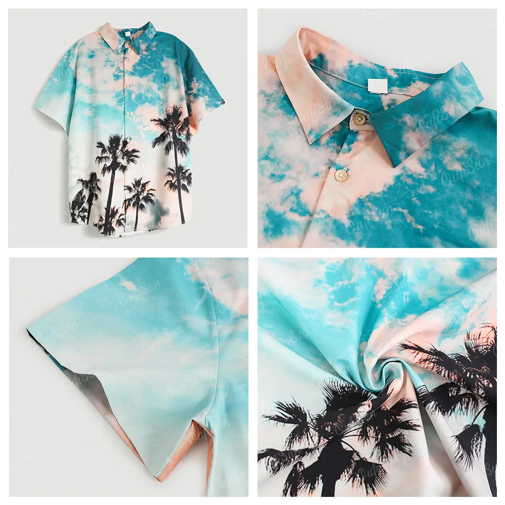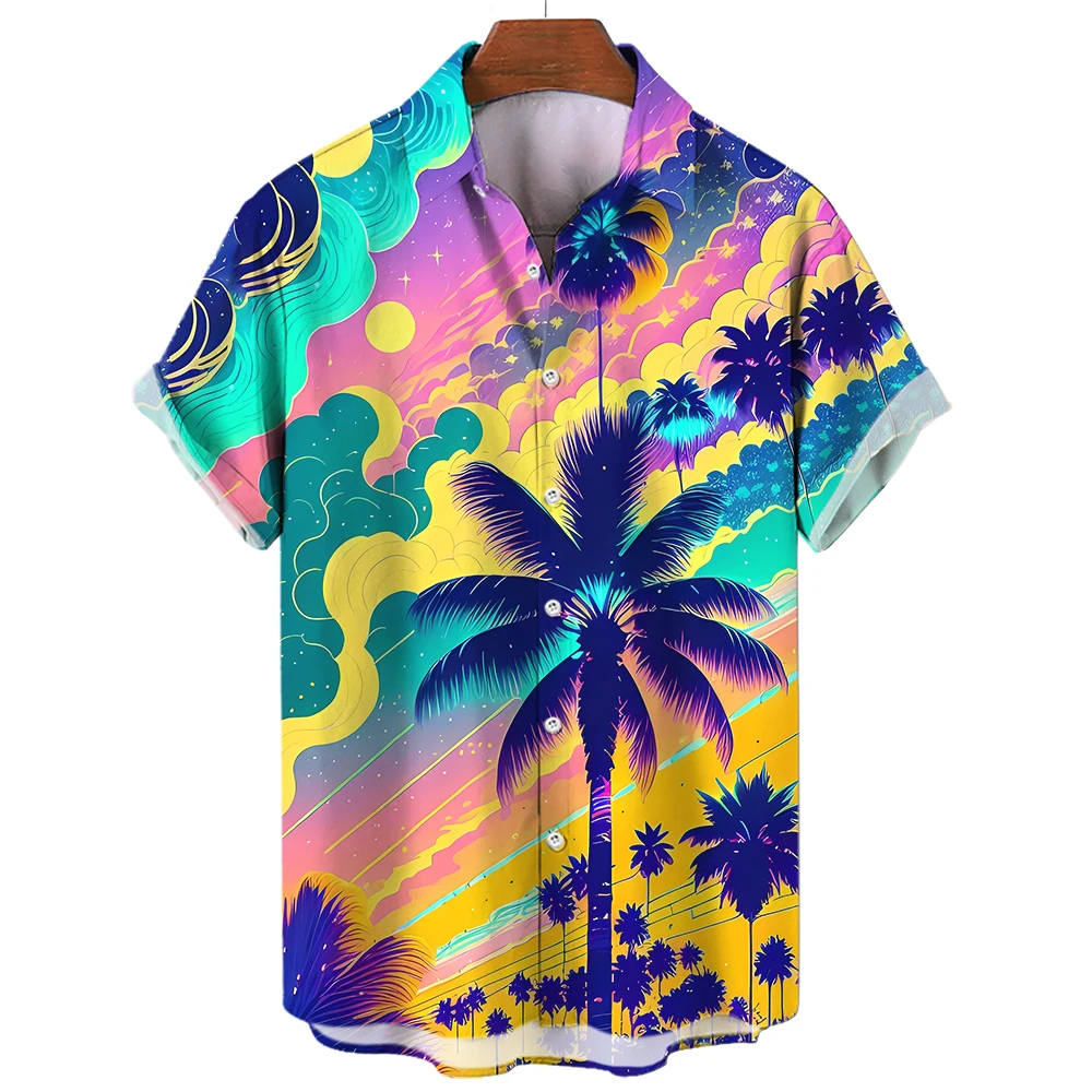 Гавайская рубашка для мужчин, пляжная футболка Coconut Tree, повседневная, с ...