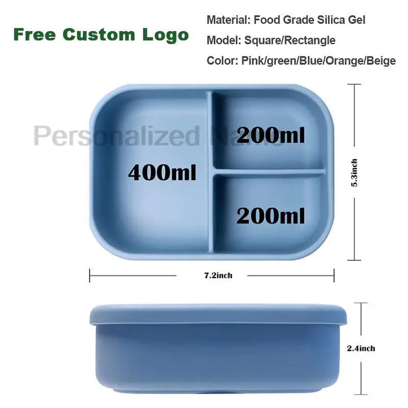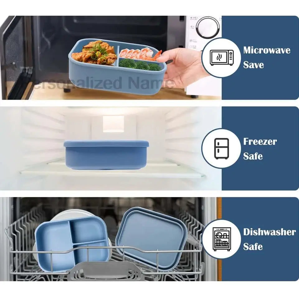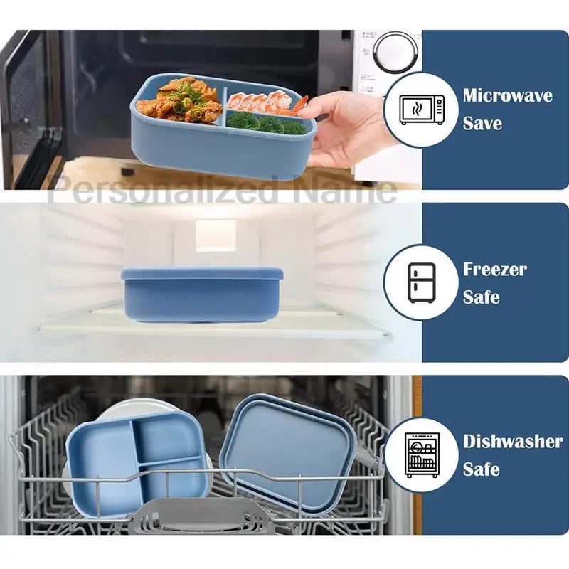 Силиконовый ланч-бокс Bento Box с 3 отделениями, с персонализированным именем...