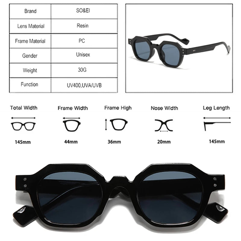 Солнцезащитные очки So&ei Retro Polygon Small Square, женские, с защитой ...