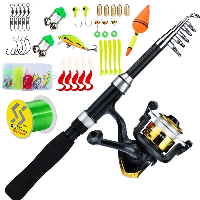 Детский рыболовный набор Sougayilang, полный комплект с телескопической удочк...