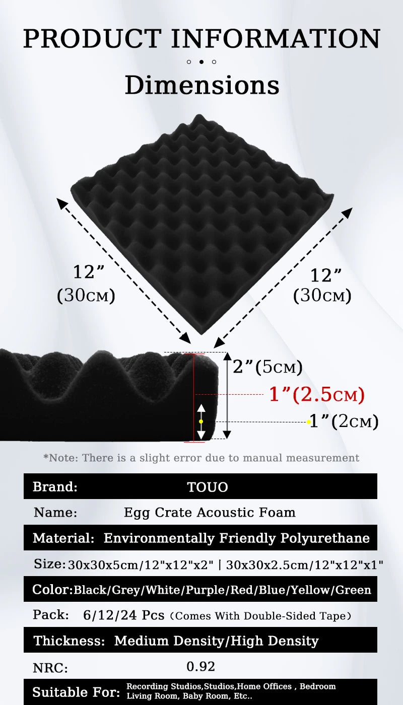 Размер : 30x30x2.5/5см/12"x12"x1/2"