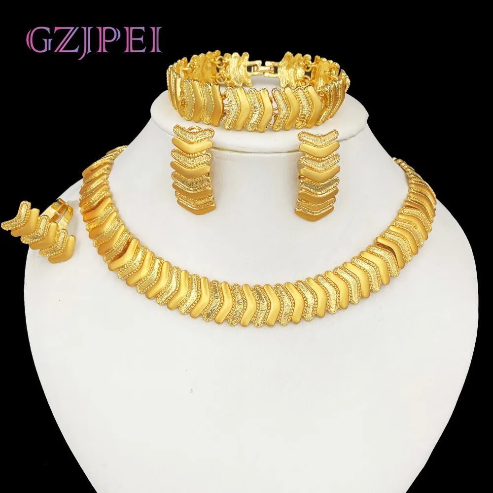 Gzjpei Unique Design Jewelry Set Luxury Gold Plated Necklace Bracelet Bangle ...