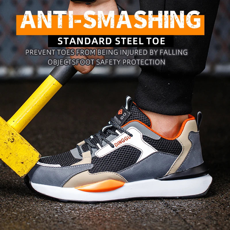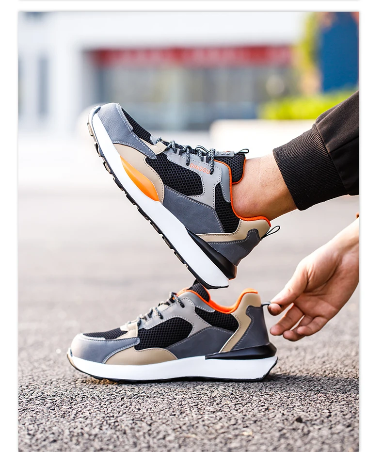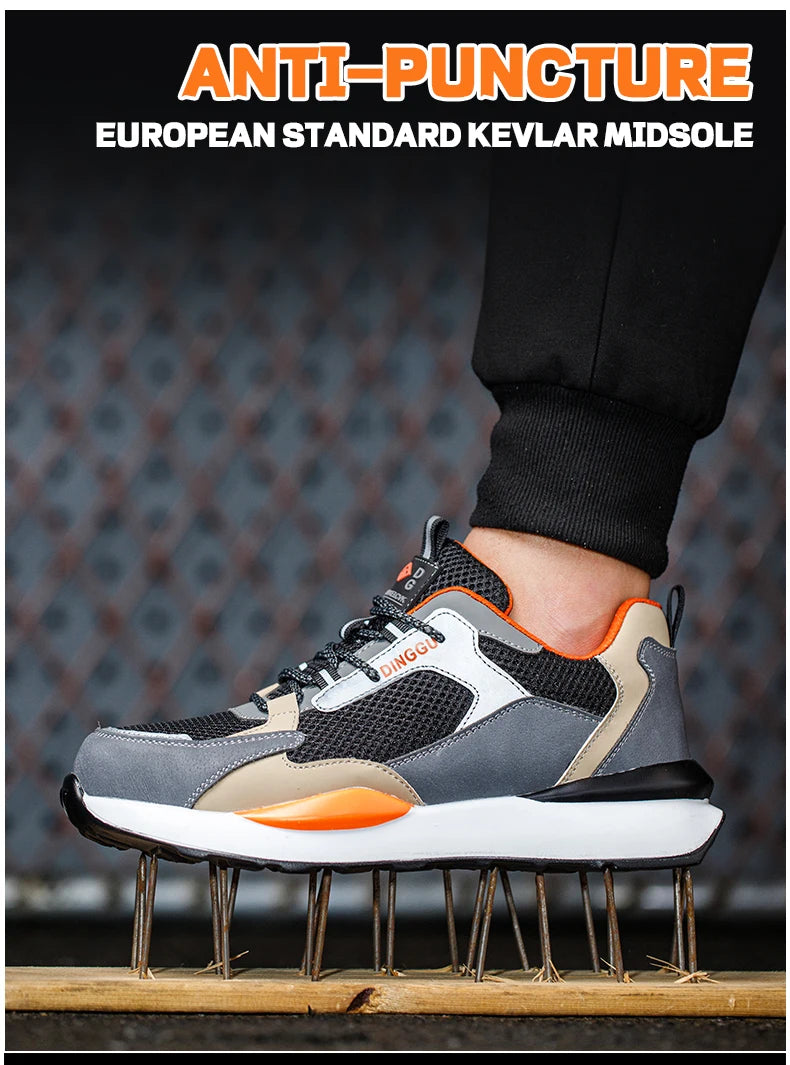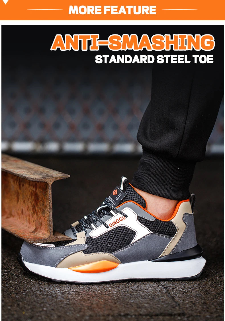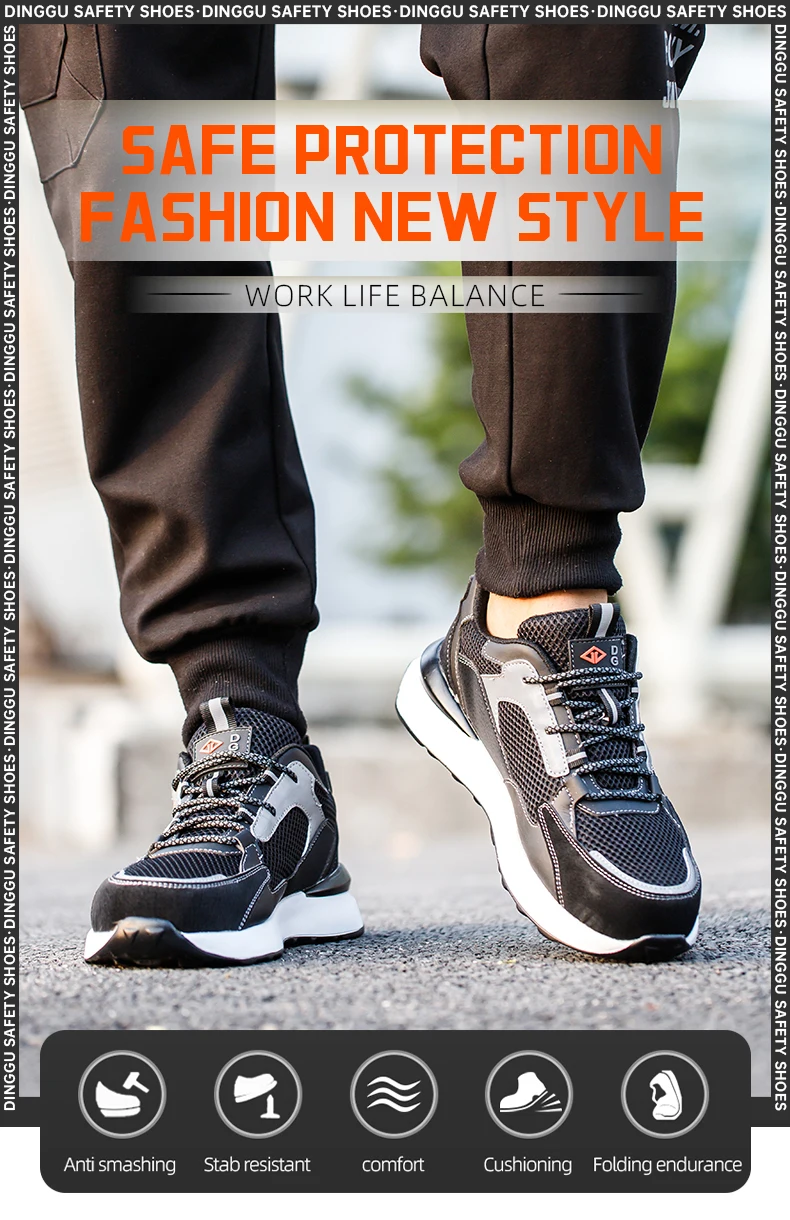 Новые летние дышащие мужские рабочие кроссовки с защитой от проколов и ударов, прочные кроссовки со сталь...