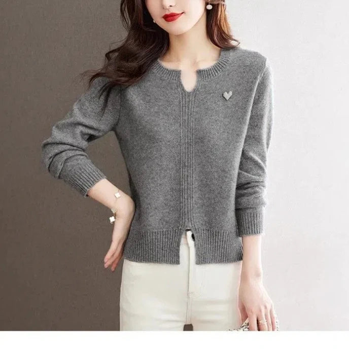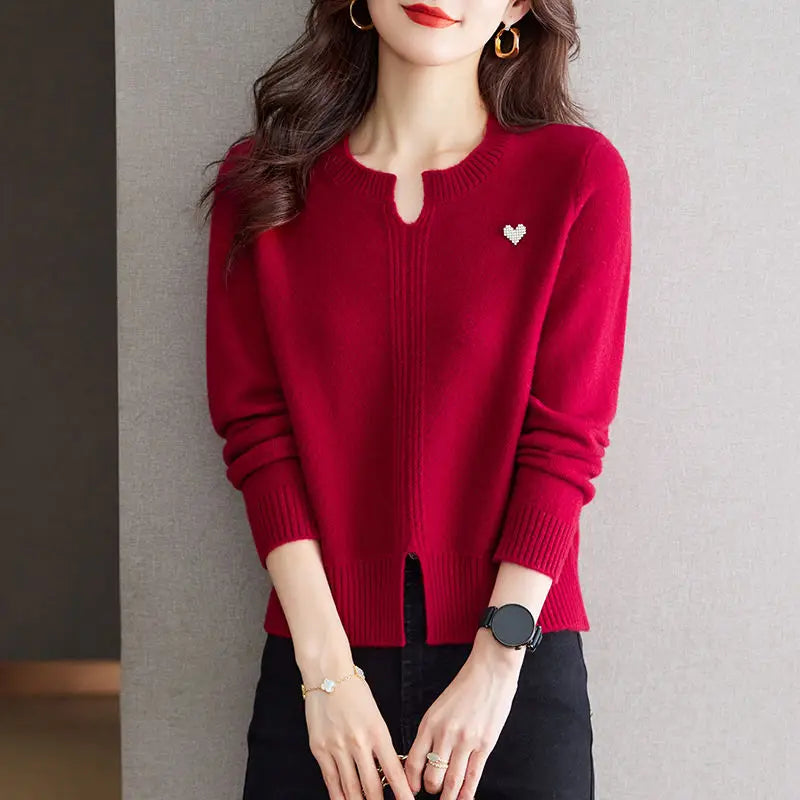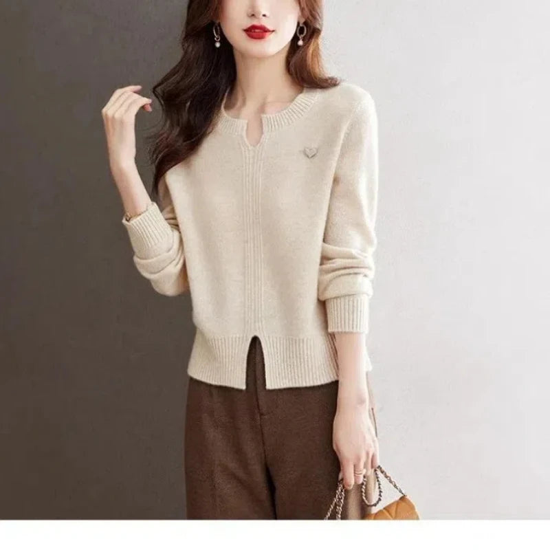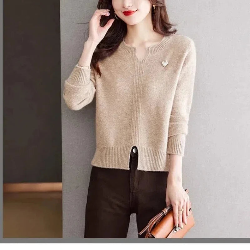 Офисная женская одежда осень-зима однотонный длинный свитер с круглым вырезом