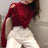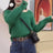 Весна-Осень Женская Одежда Однотонный Пуловер На Пуговица...