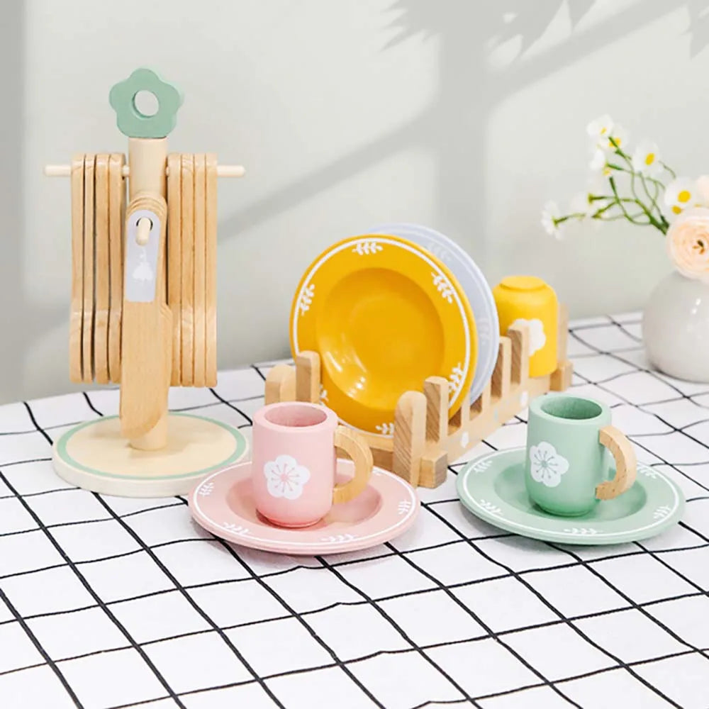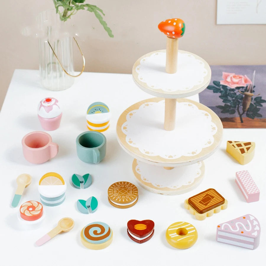 Деревянный игровой домик, подставка для десерта, набор для чаепития для детей, ролевая игра, симуляция пи...