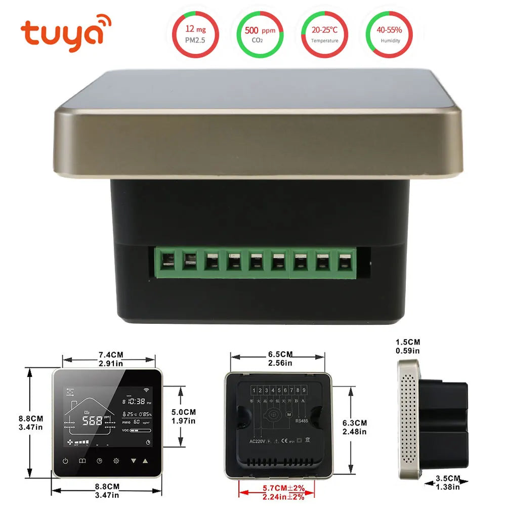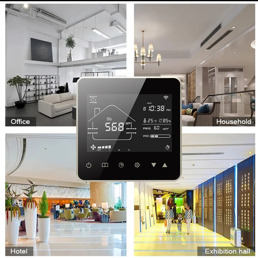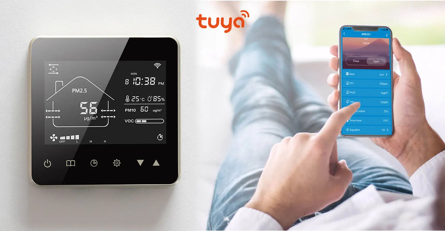 Tuya Wifi Smart Home CO2 PM2.5 Система клапанов свежего воздуха с фанкойлом и...