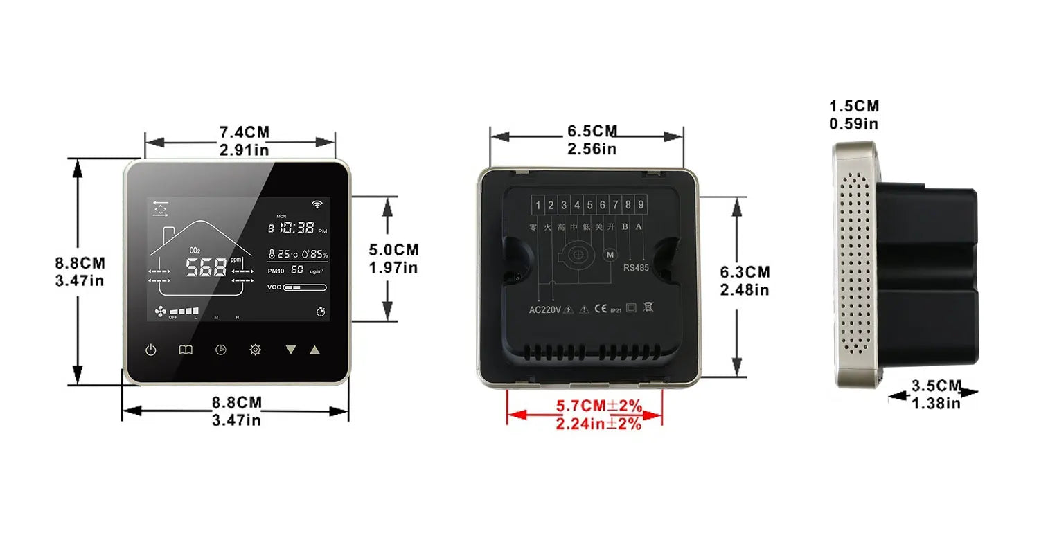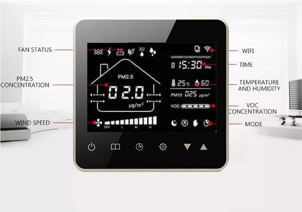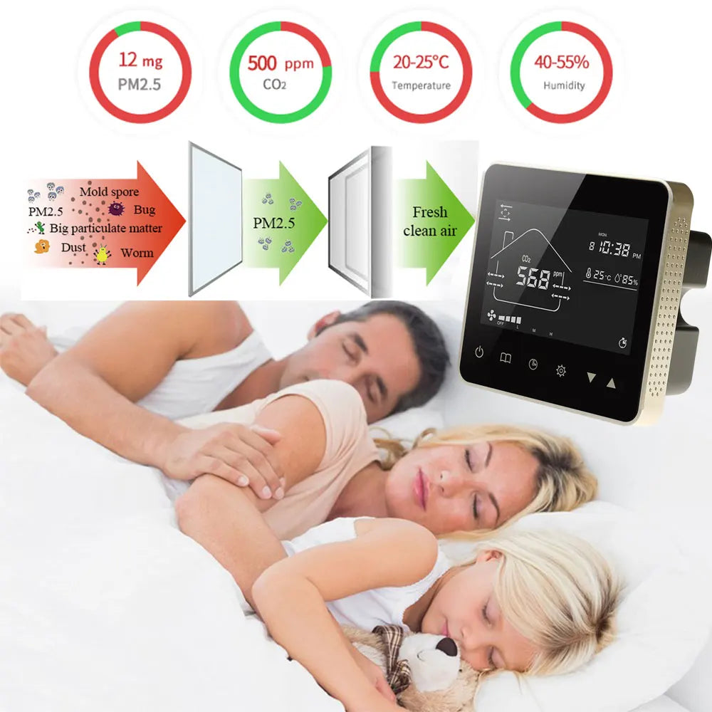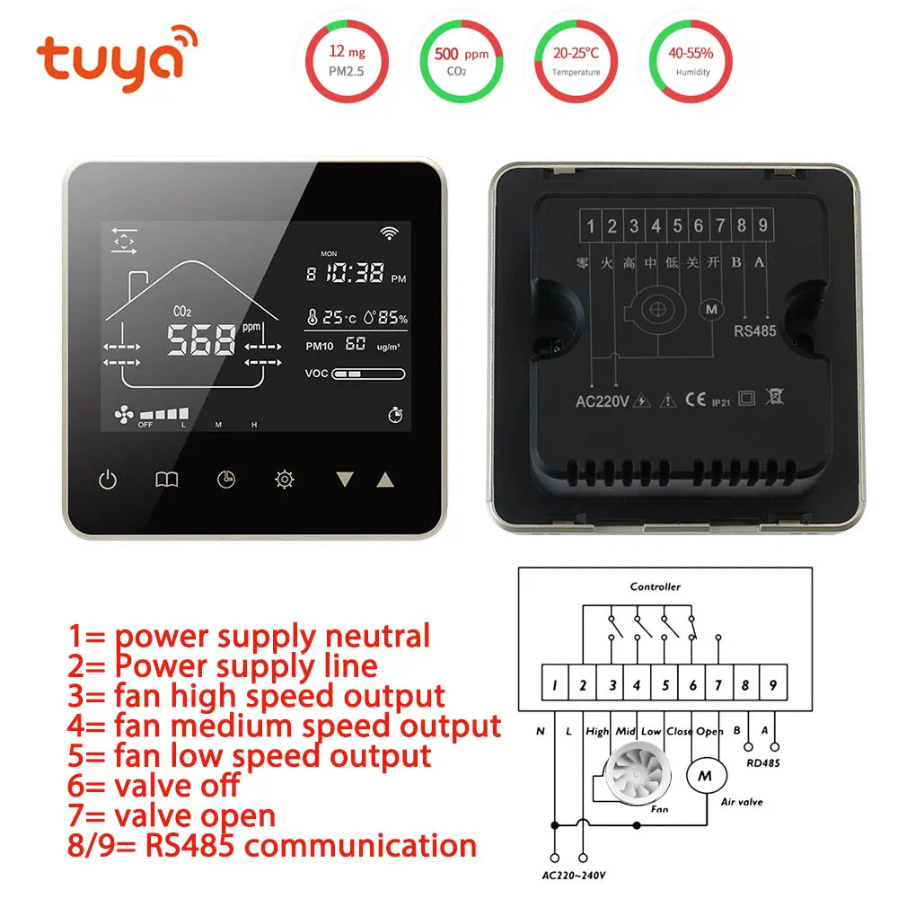 Tuya Wifi Smart Home CO2 PM2.5 Система клапанов свежего воздуха с фанкойлом и...