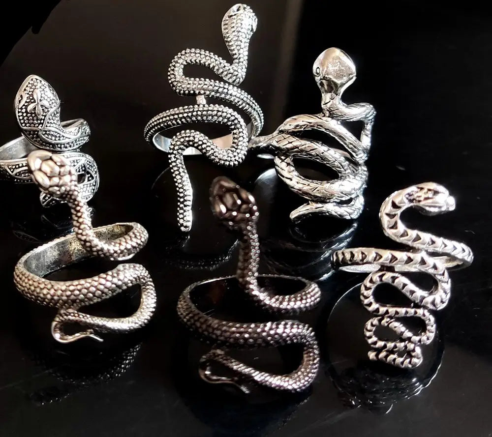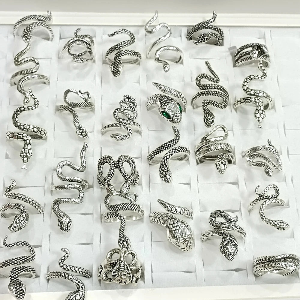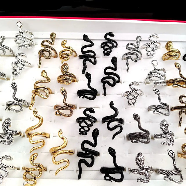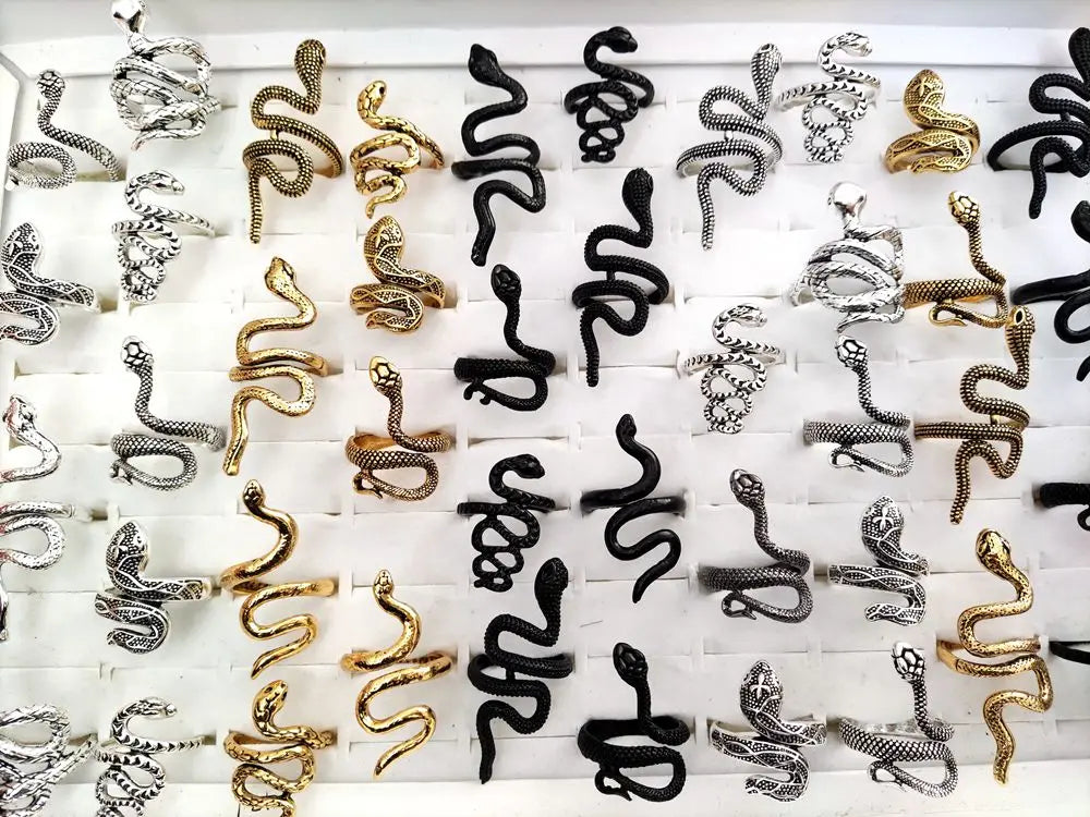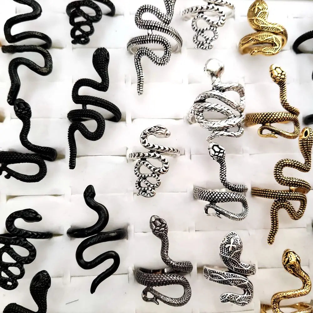 100 шт./лот старинное кольцо в стиле панк с изображением животного-змеи, позолоченное, посеребренное, черное, в стиле хип-хоп, рок, модное кольцо, ювелирные изделия для вечеринок