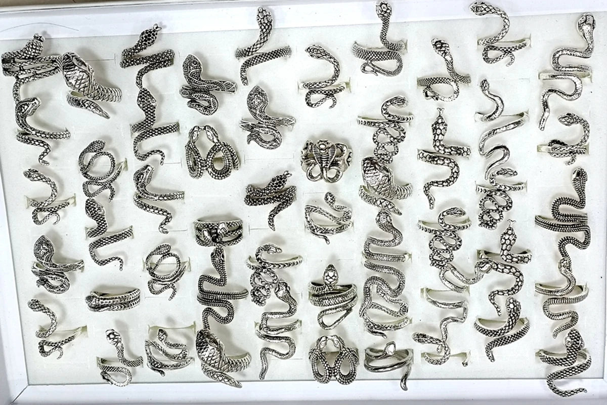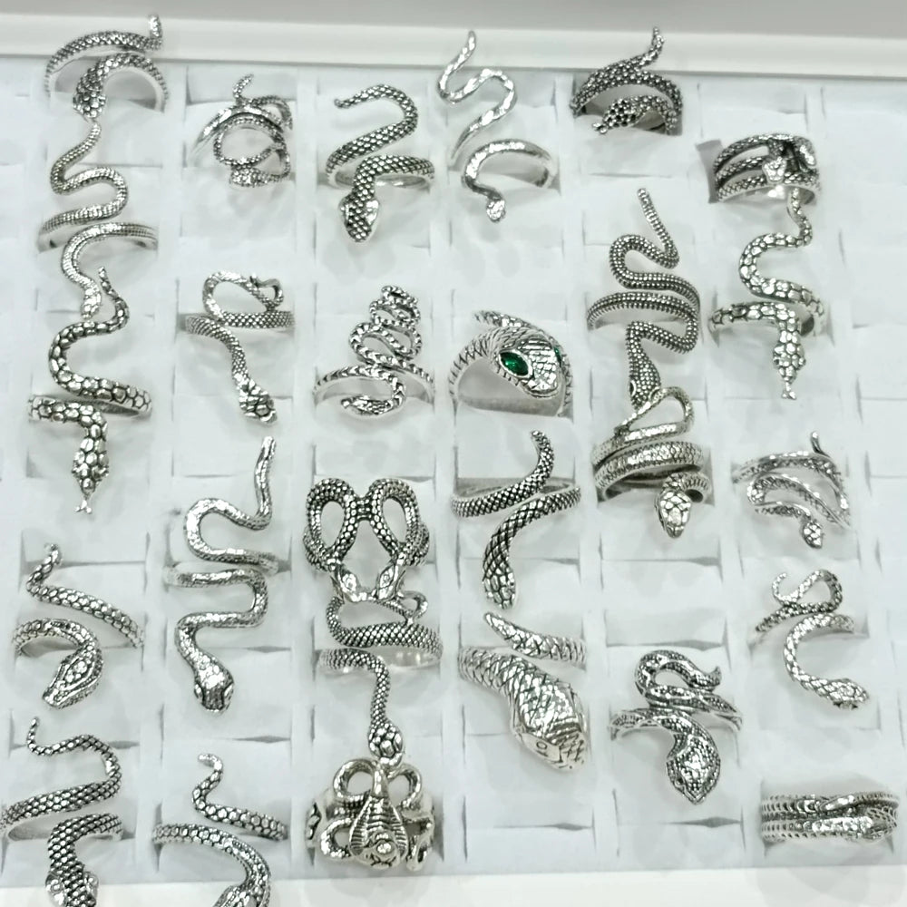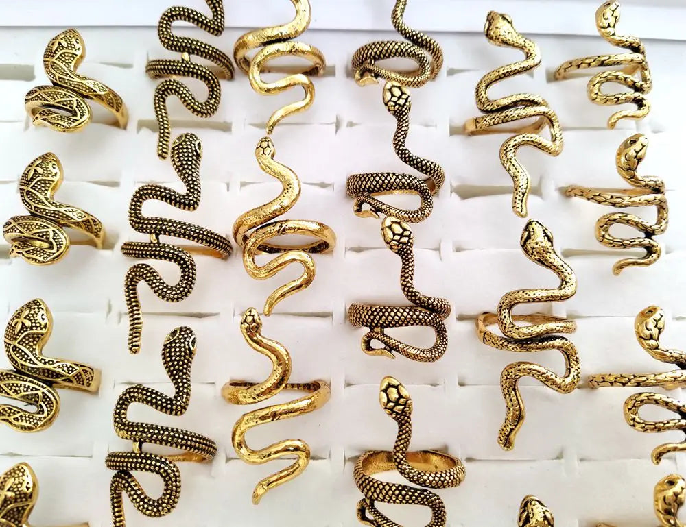 100 шт./лот старинное кольцо в стиле панк с изображением животного-змеи, позолоченное, посеребренное, чер...