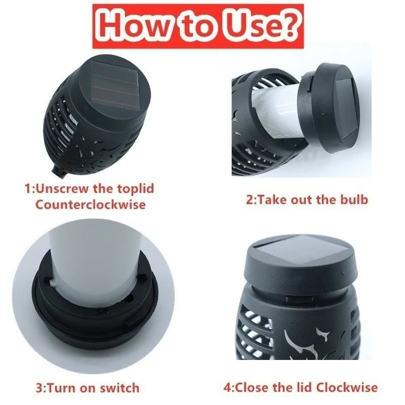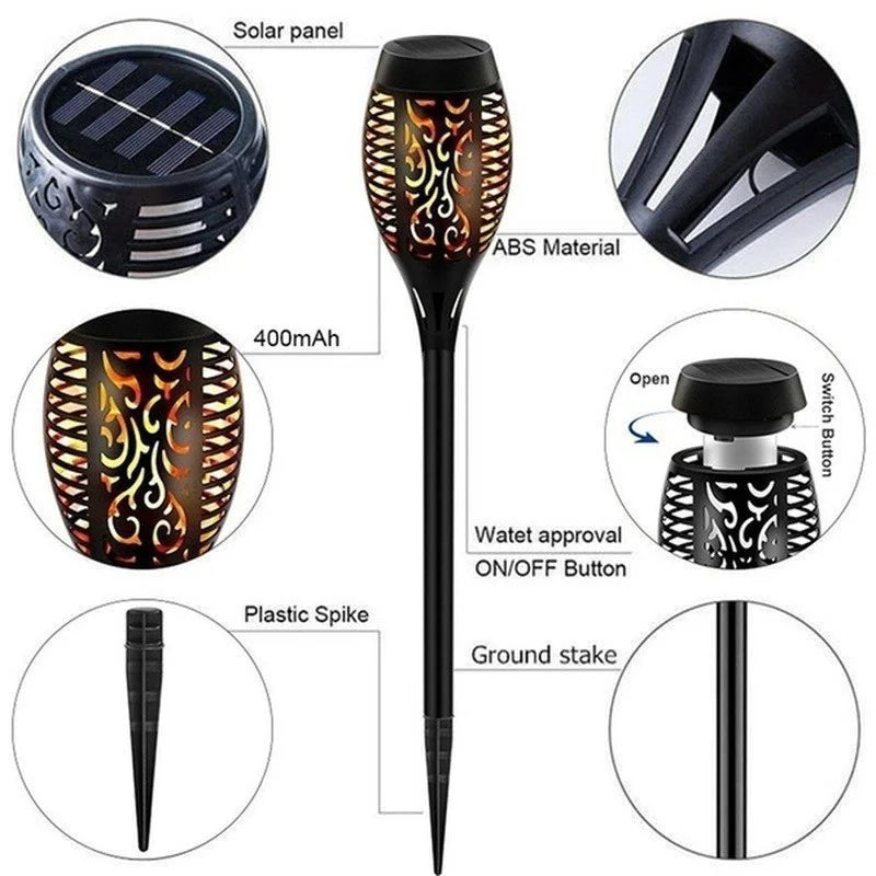 1 2 4 6 8 10Pcs Solar Flame Torch Lights Flickering Light Waterproof Garden D...