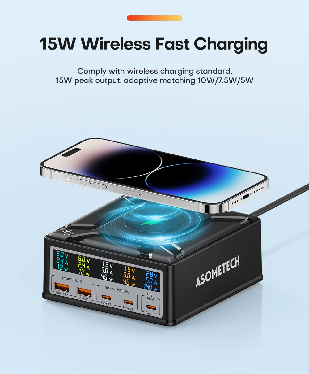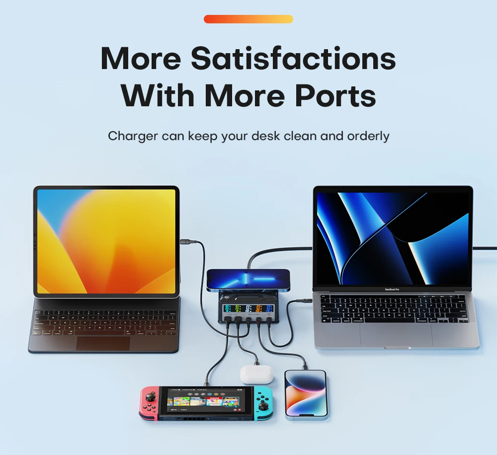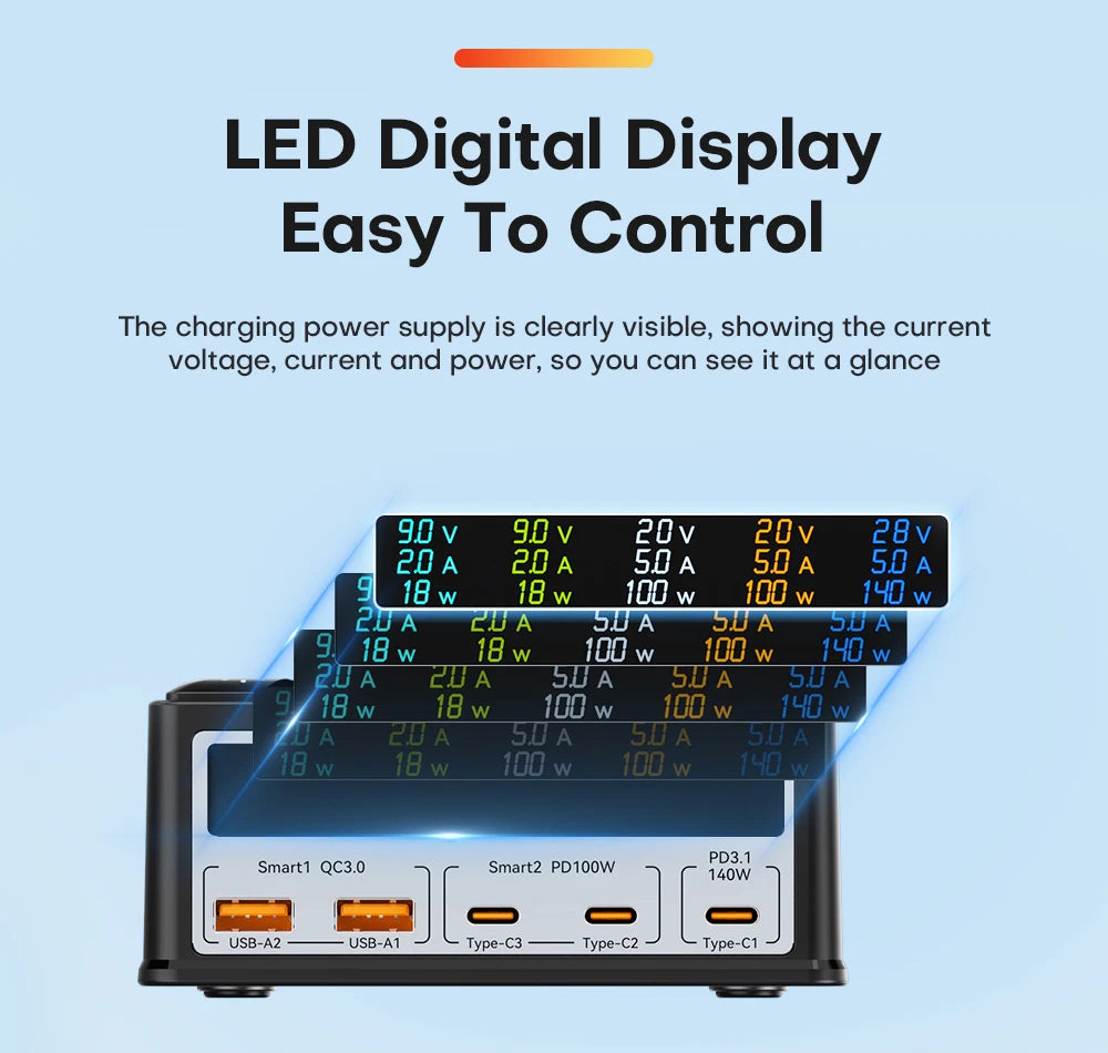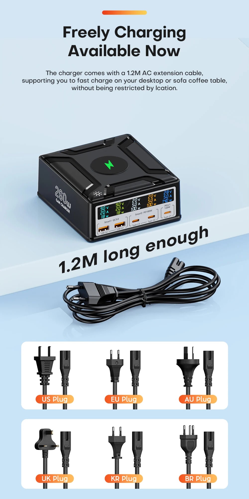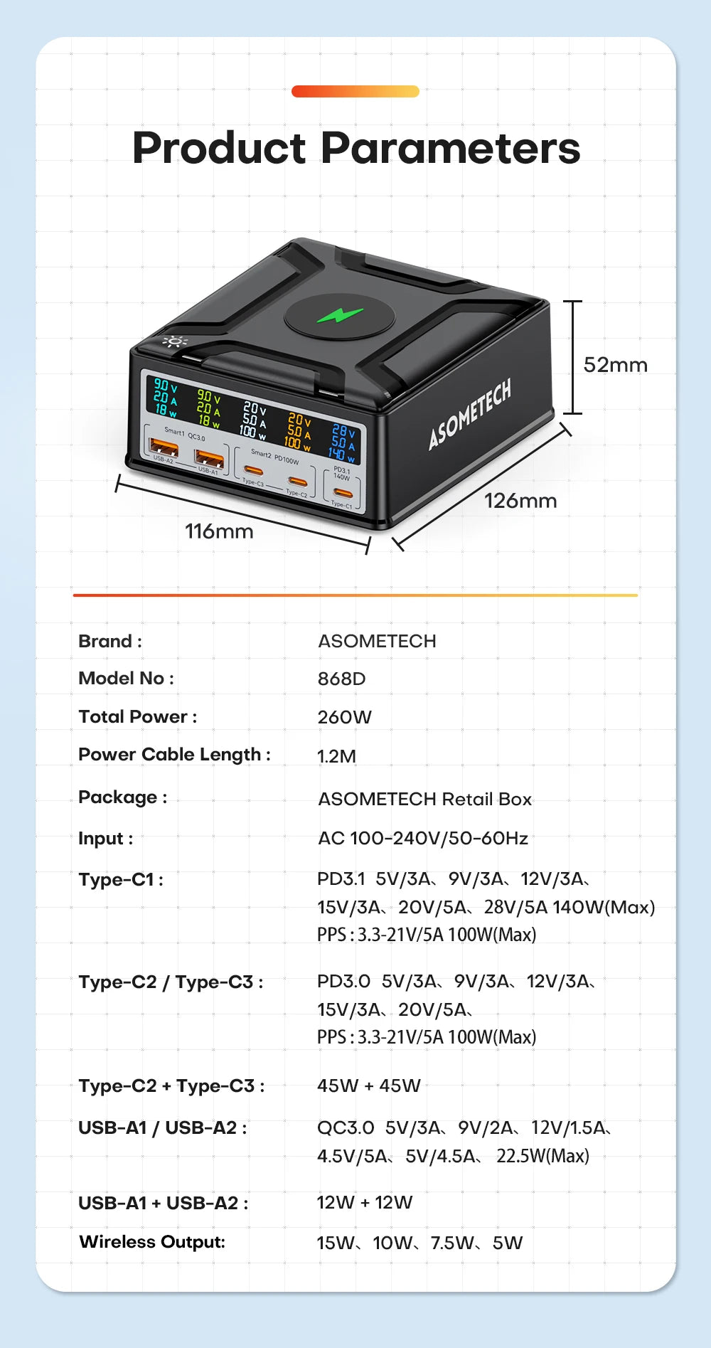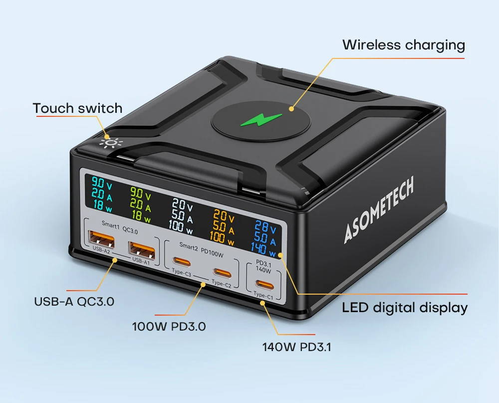 Зарядное устройство GaN USB C 260 Вт Pd3.1 140 Вт USB Type C для быстрого зар...