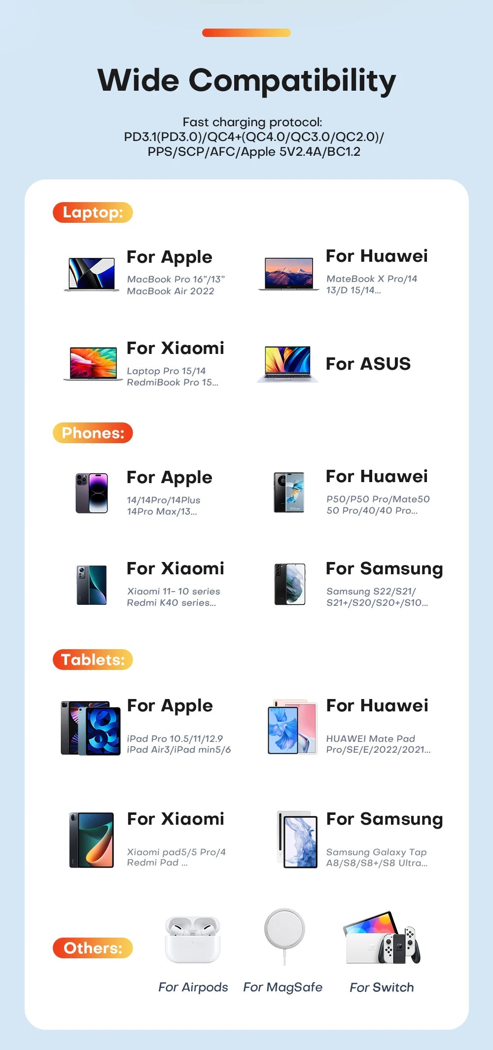 Применяемые протоколы быстрой зарядки : VIVO Super FlashCharge, Samsung Adaptive Fast Charge, Huawei FCP, USB PD, BC1.2, Qualcomm Quick Charge, Huawei Quick Charge