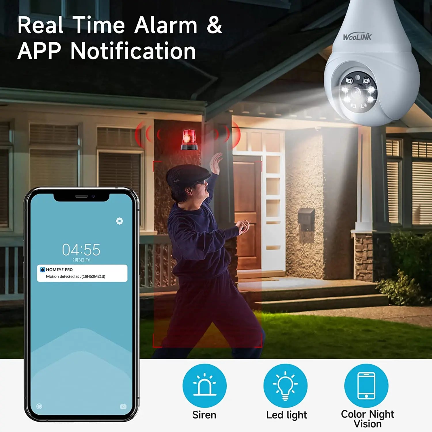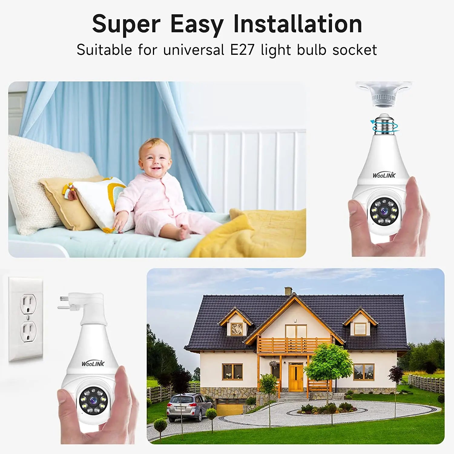 2K Wireless Security Light Bulb Camera 3MP WiFi Home Security Smart Surveilla...