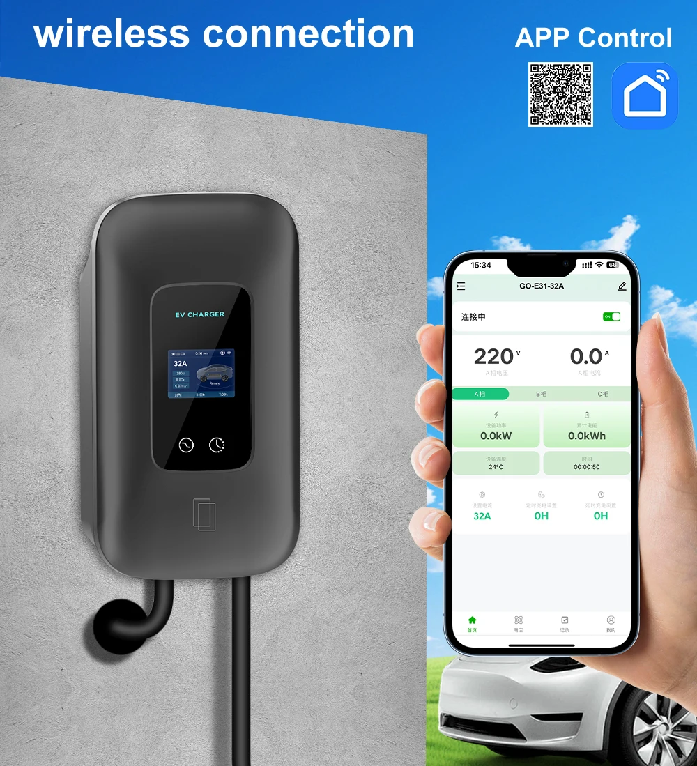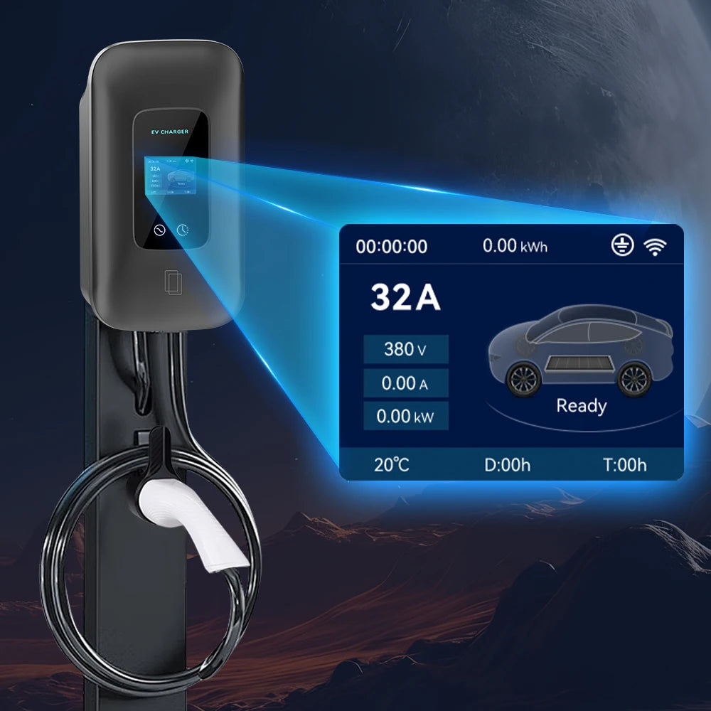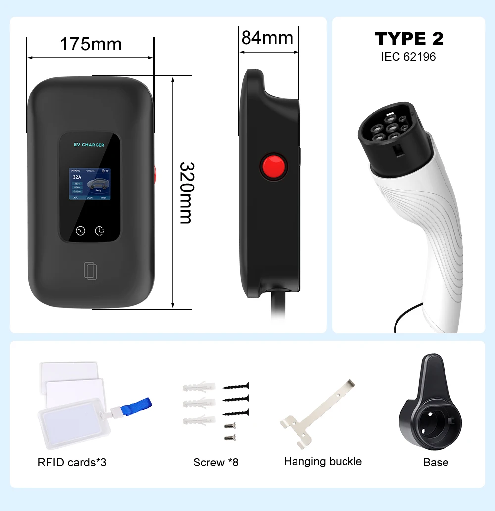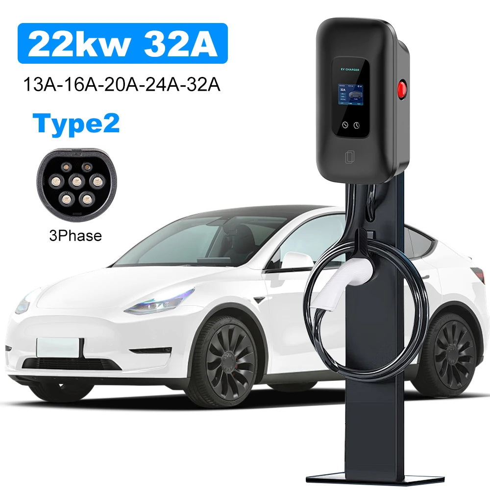 Зарядная станция для электромобилей 32A Type2, 1, 3 фазы, 7, 11, 22 кВт, регу...