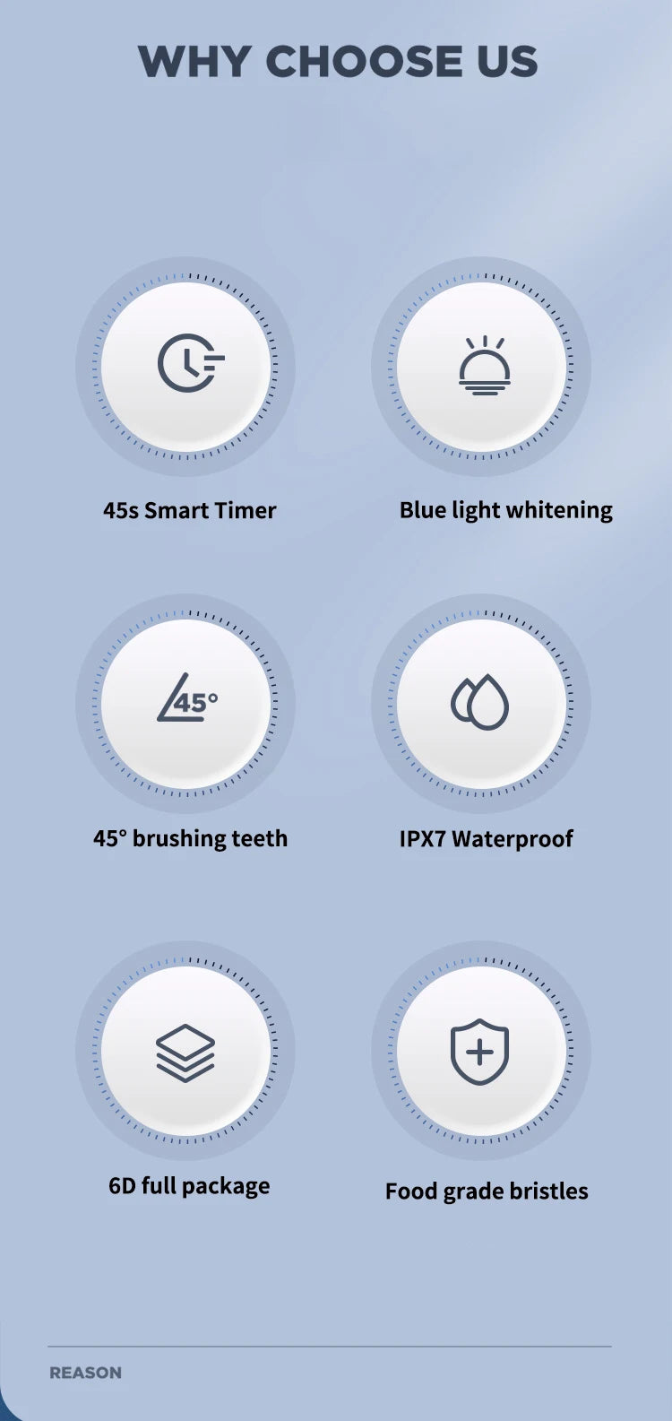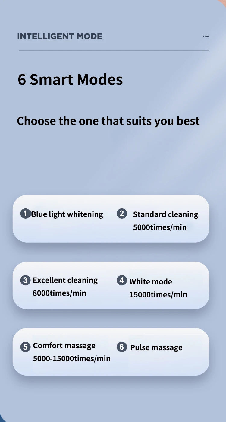 Тип : Акустическая волна, электрическая зубная щетка с углом обзора 360 градусов