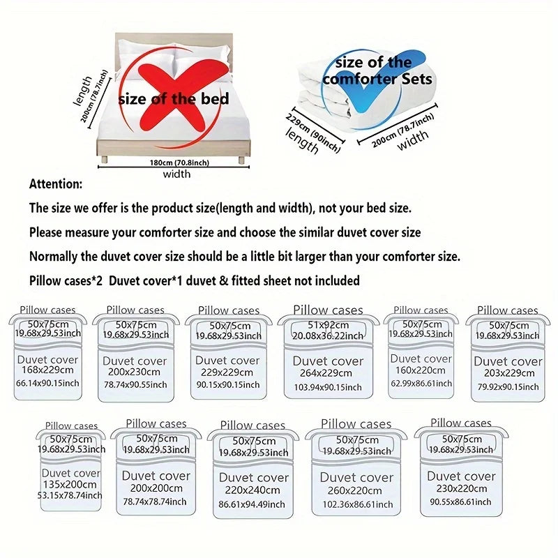 Pacakge Inculde : 1 duvet cover + 1 or 2 pillowcas