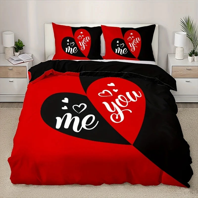 Комплект из 3 стеганых покрывал с романтическим принтом «Любовь» в черно-крас...