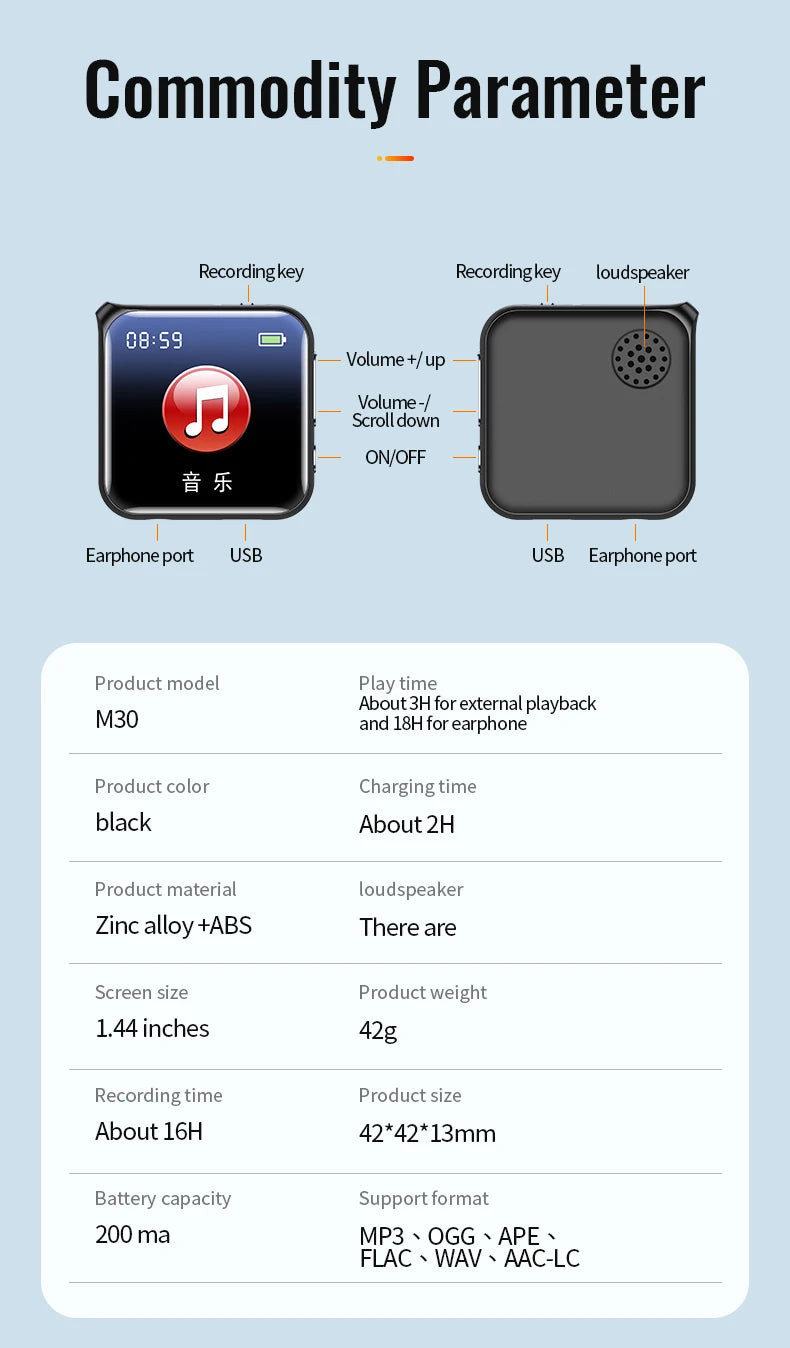 4 ГБ 256 ГБ Мини Аудио Диктофон Музыка MP3 Плеер Электронная Книга FM Радио Б...
