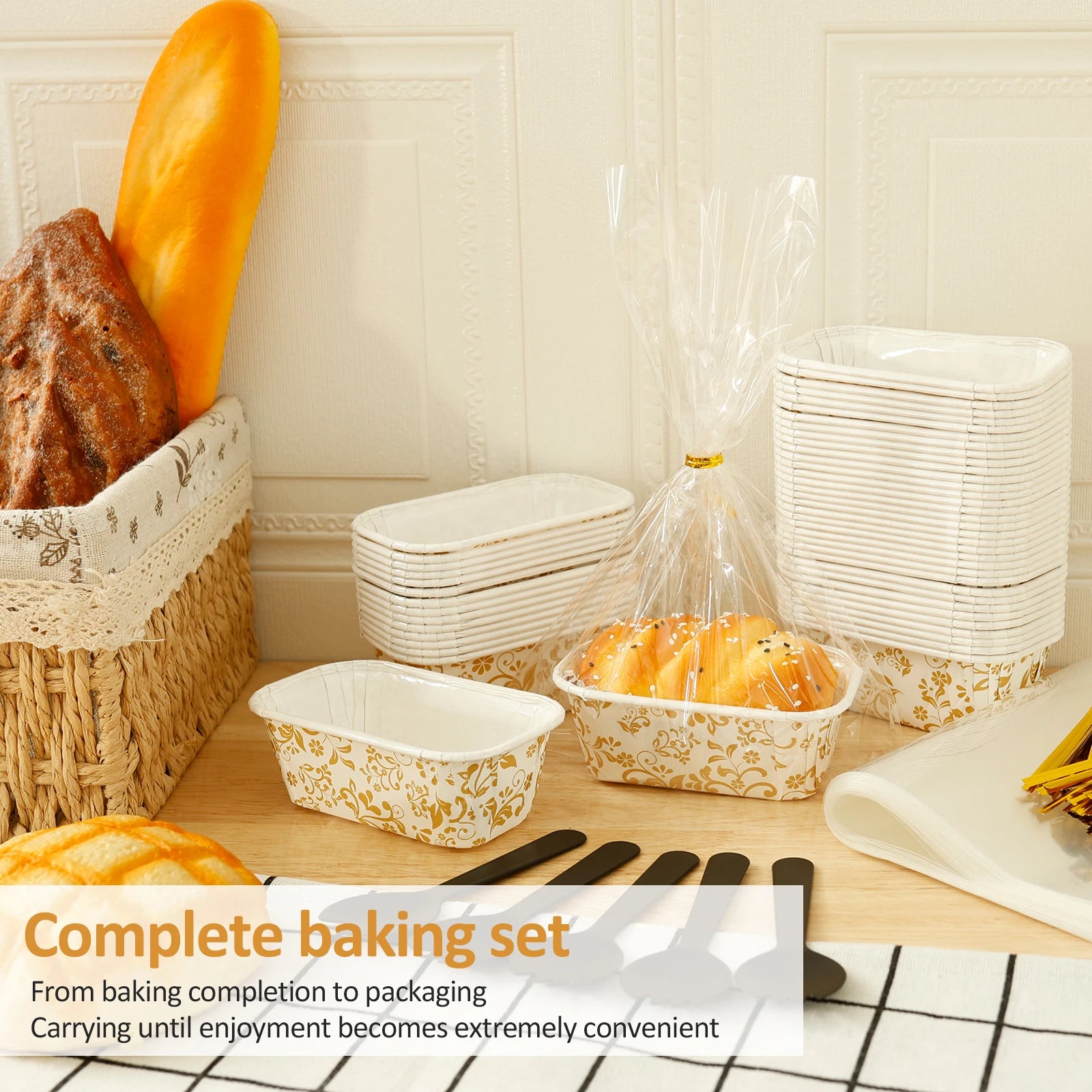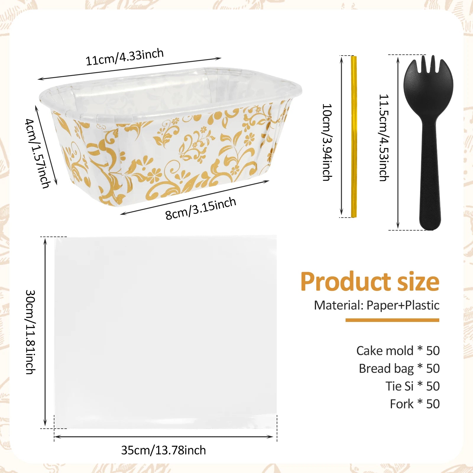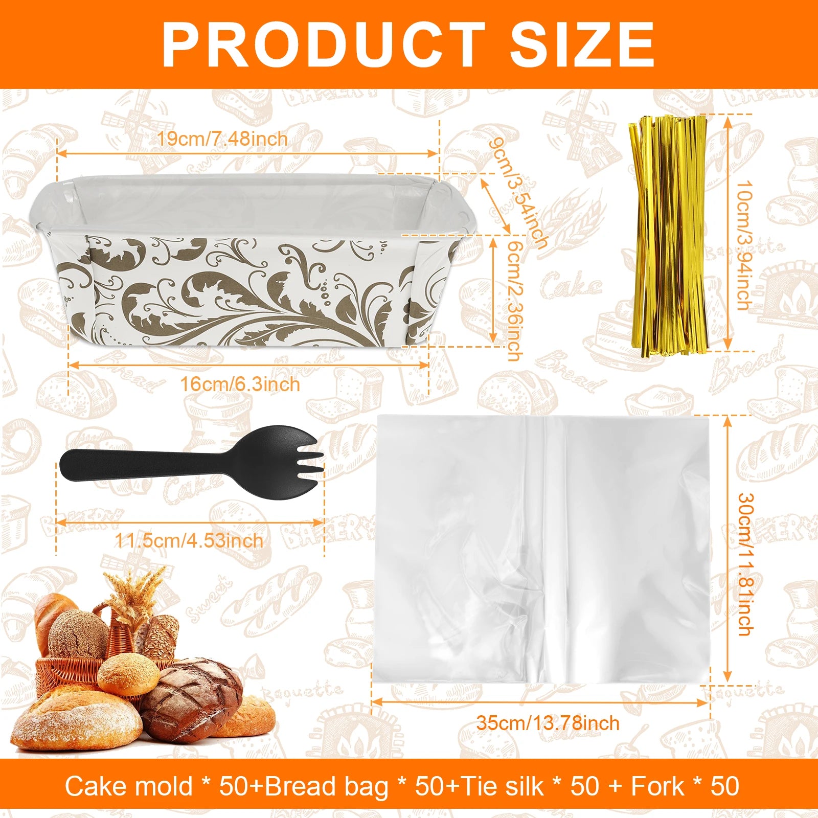 Полный набор:Каждый набор для выпечки включает в себя 50 штук бумажных противней для торта, упаковочные пакеты для хлеба, проволоку для обвязки и вилки соответственно. Со всеми этими необходимыми предметами в одном наборе у вас есть все, что нужно для ваших проектов по выпечке